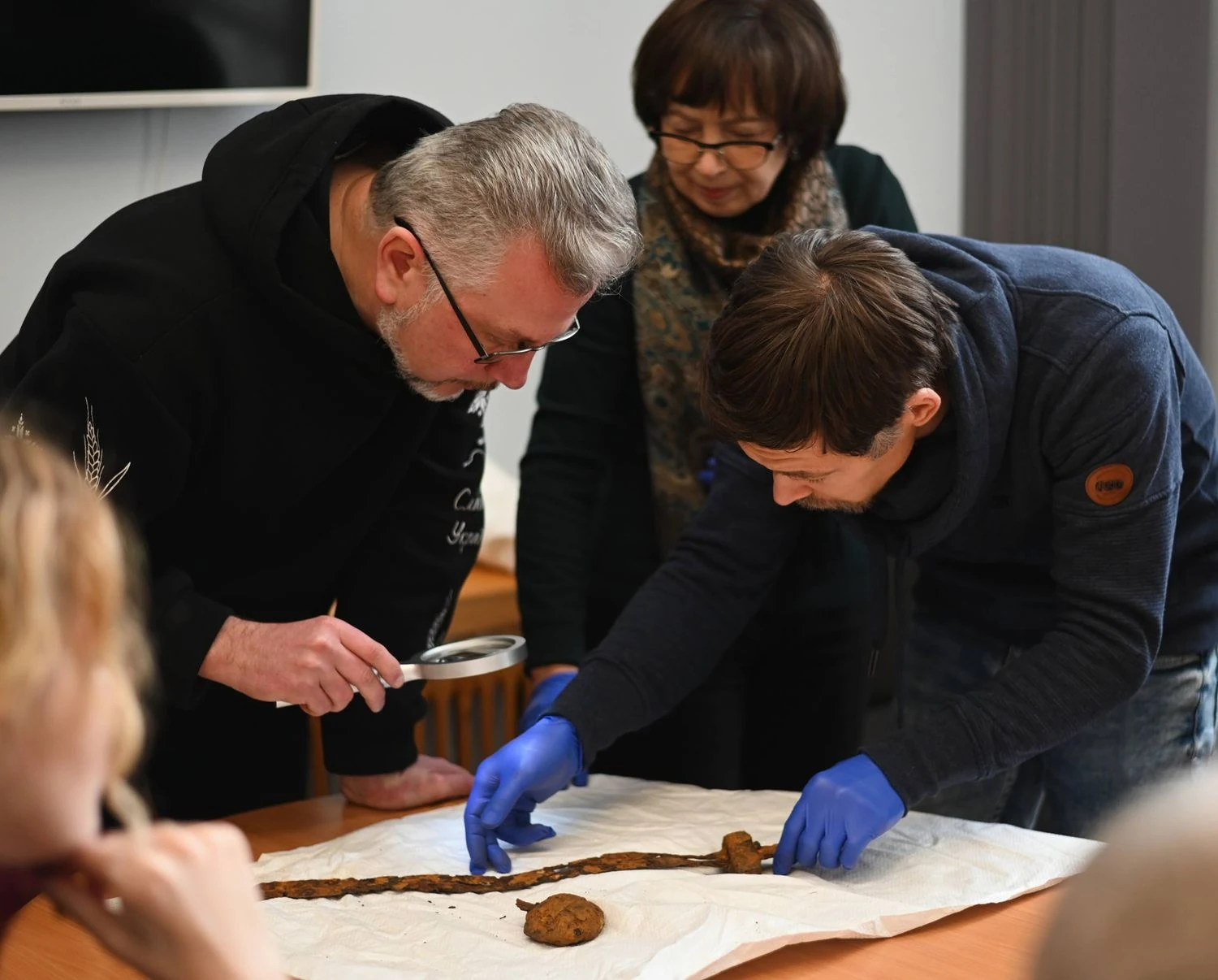 Віктор Мощенко та його донька Наталя, які знайшли меч, отримали подяку та подарунок – альбом з найкращими експонатами музею. Їм також провели індивідуальну екскурсію по всіх виставках.