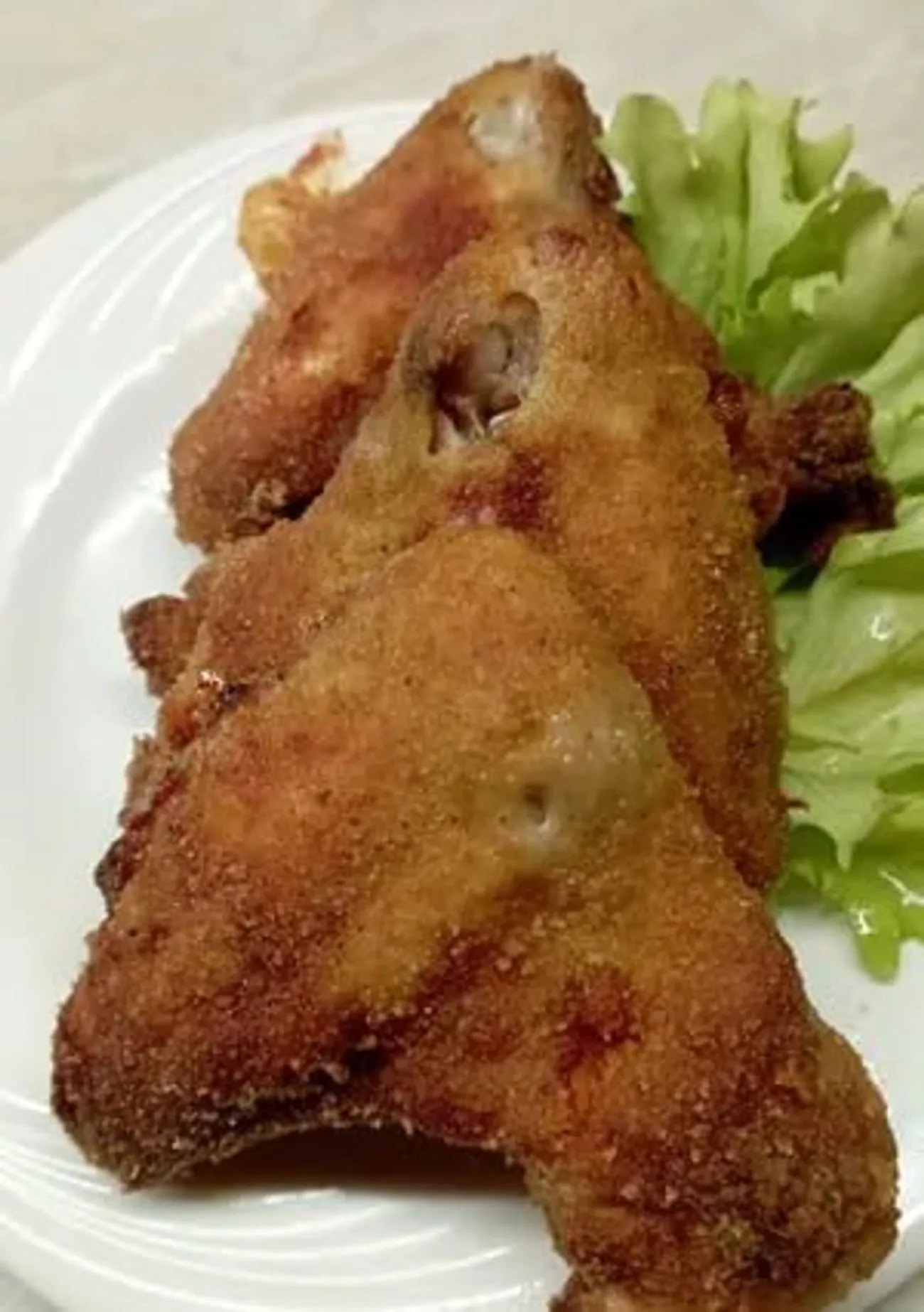 1. Взяти крила з плечовою частиною ,відрізати її по згину. Відбивати молоточком з обох боків. М'ясо скласти в ємність, посипавши сіллю. Залишаємо на 1 годину.