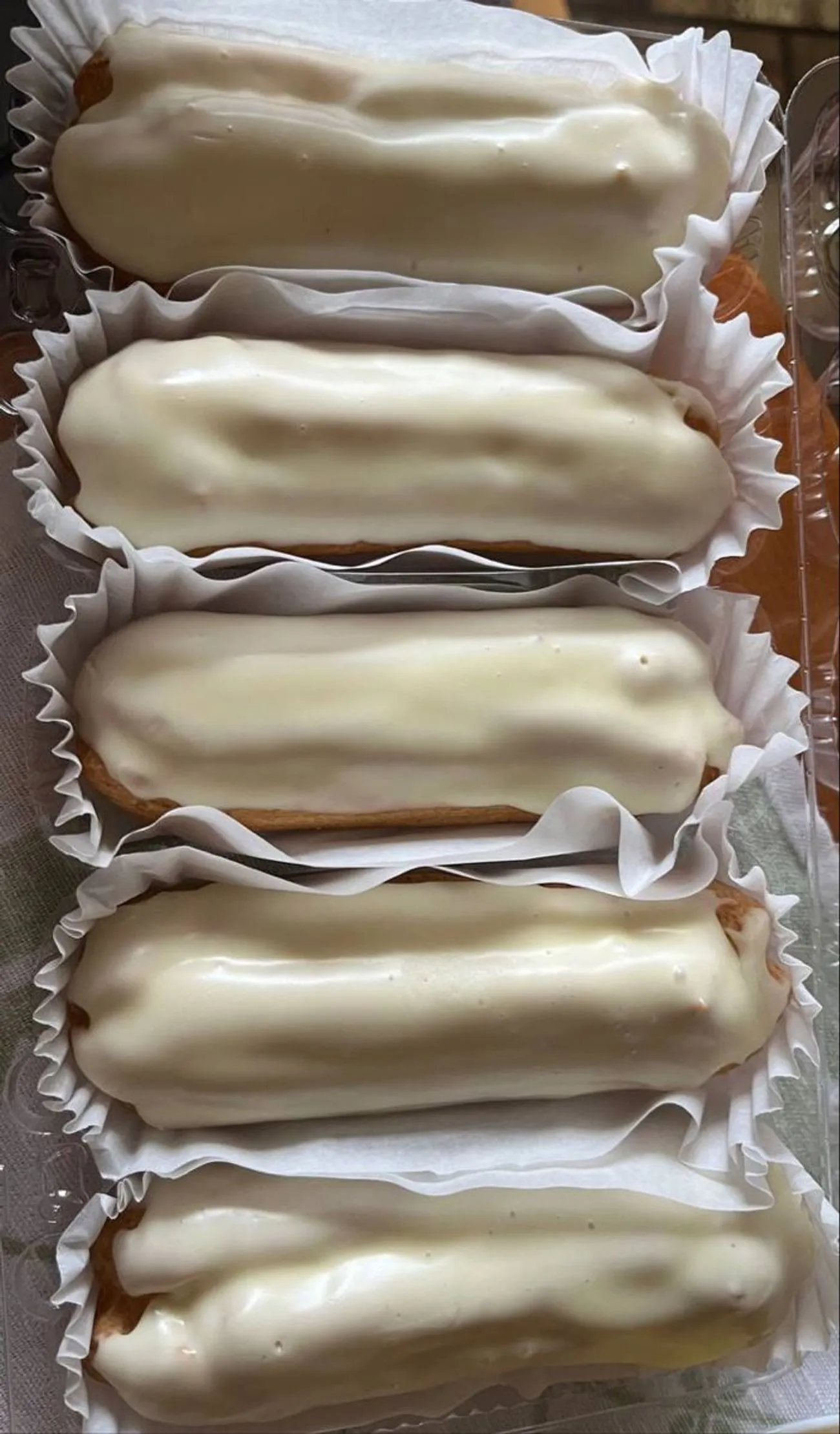 - Дайте глазурі трохи охолонути, щоб вона стала трохи густішою, але все ще досить рідкою для покриття еклерів.