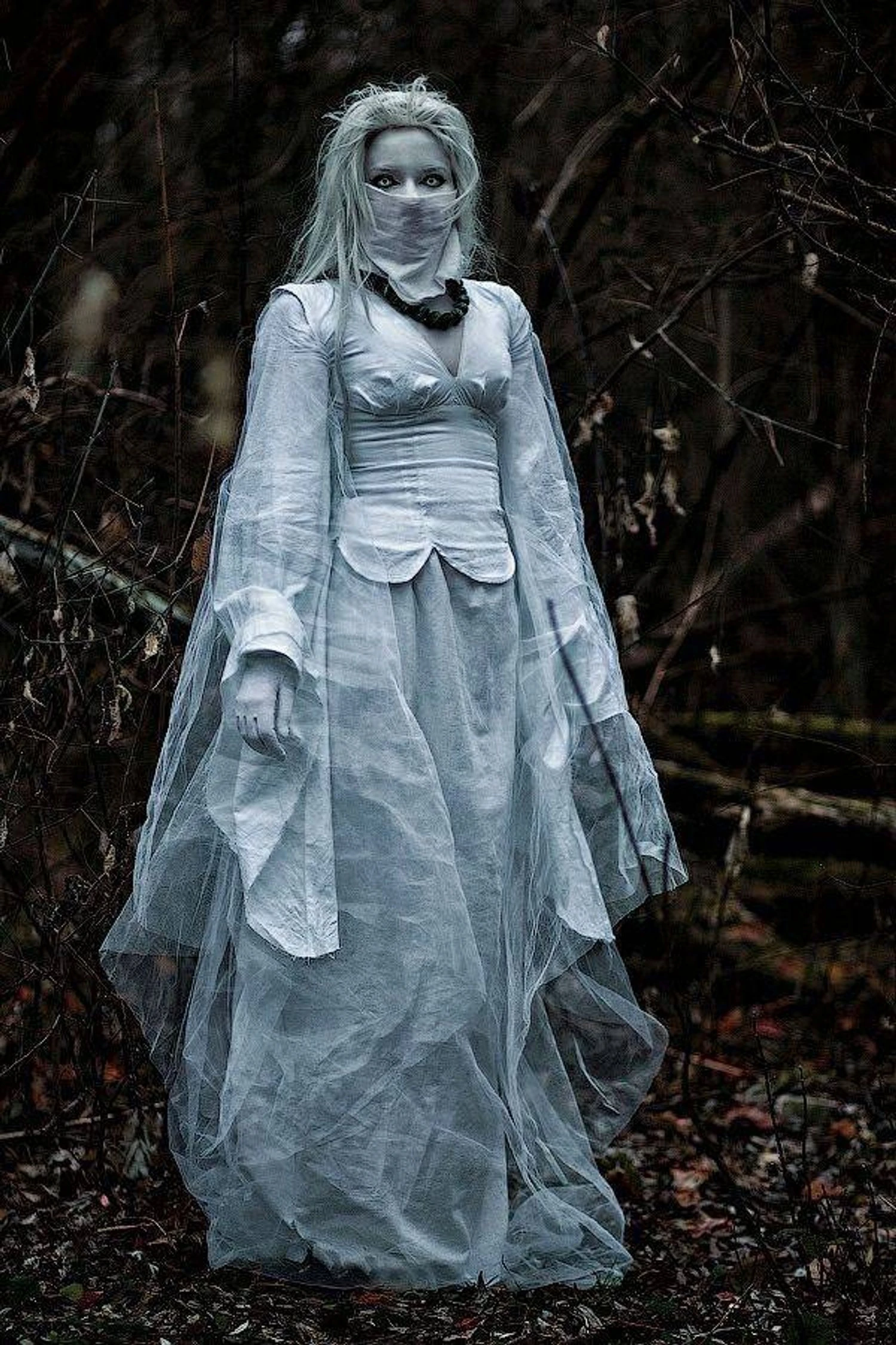 Классичний образ привида із напівпрозорою тканиною чи білим костюмом – завжди актуальний на Геловін. Легкий серпанок туману у волоссі додасть моторошності та шарму потайбічності вашому персонажу.