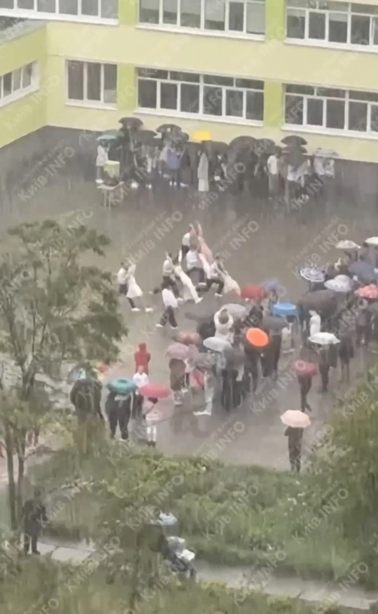 У школах Києва та області останній дзвоник відбувається під вражаючою зливою.