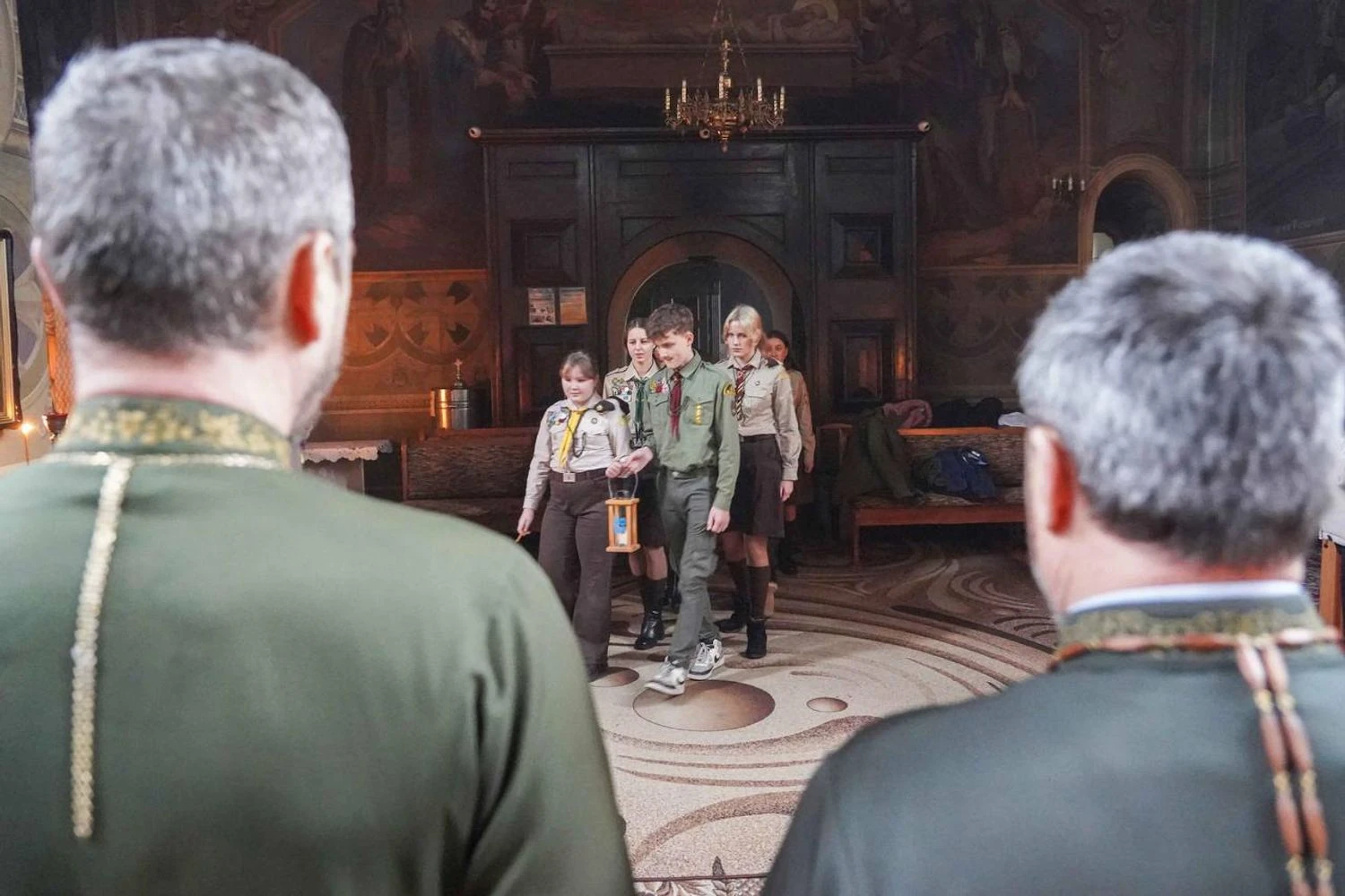 Представники "Пласту" передали Вифлеємський вогонь капеланам Сил спеціальних операцій ЗСУ. Вогонь доставлять воїнам у зону бойових дій як символ підтримки та домашнього затишку.