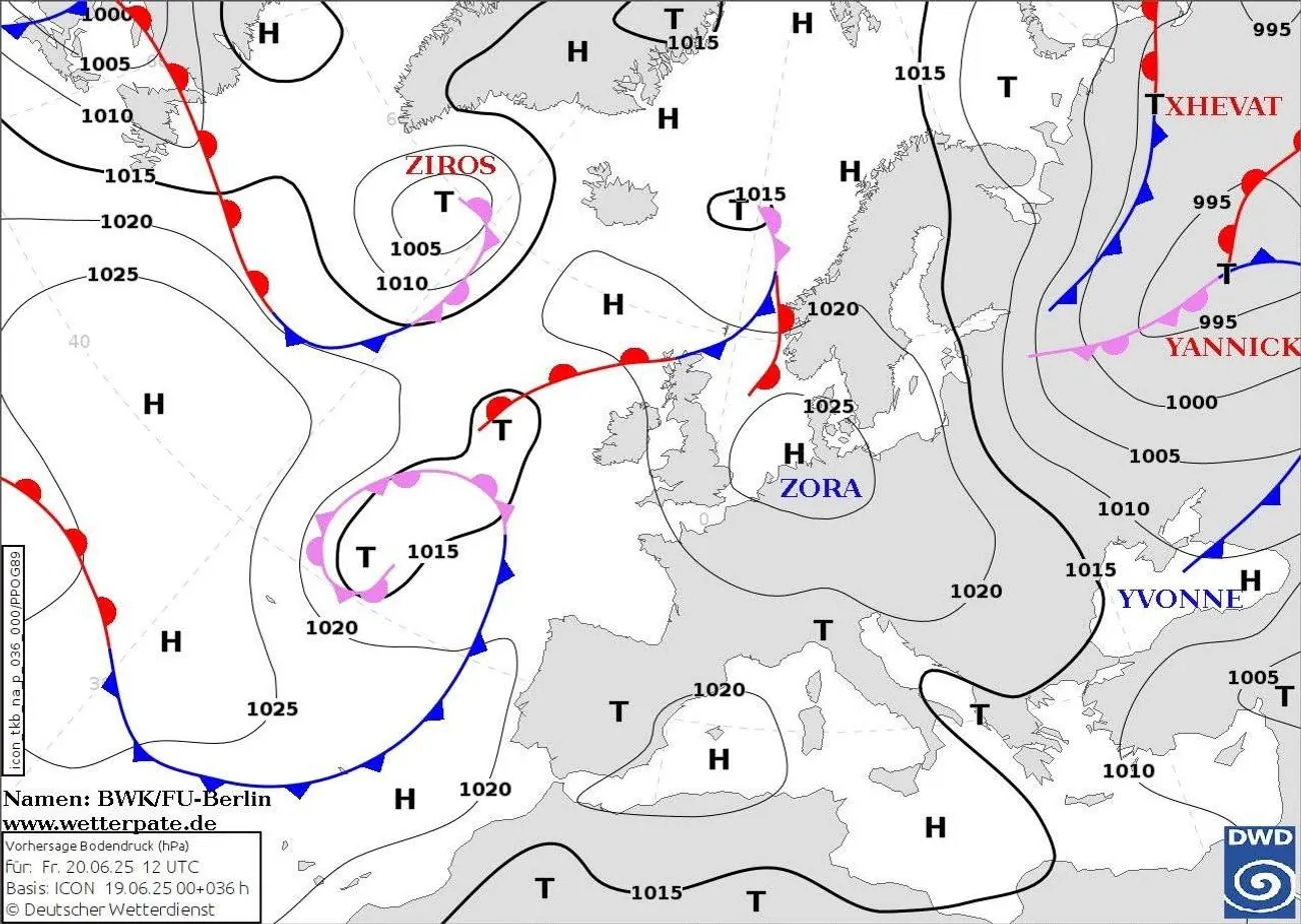 "Бо (погляньте на карту внизу) Україна зараз розташовується між антициклоном на заході та циклоном на сході", – розповіла метеорологиня.