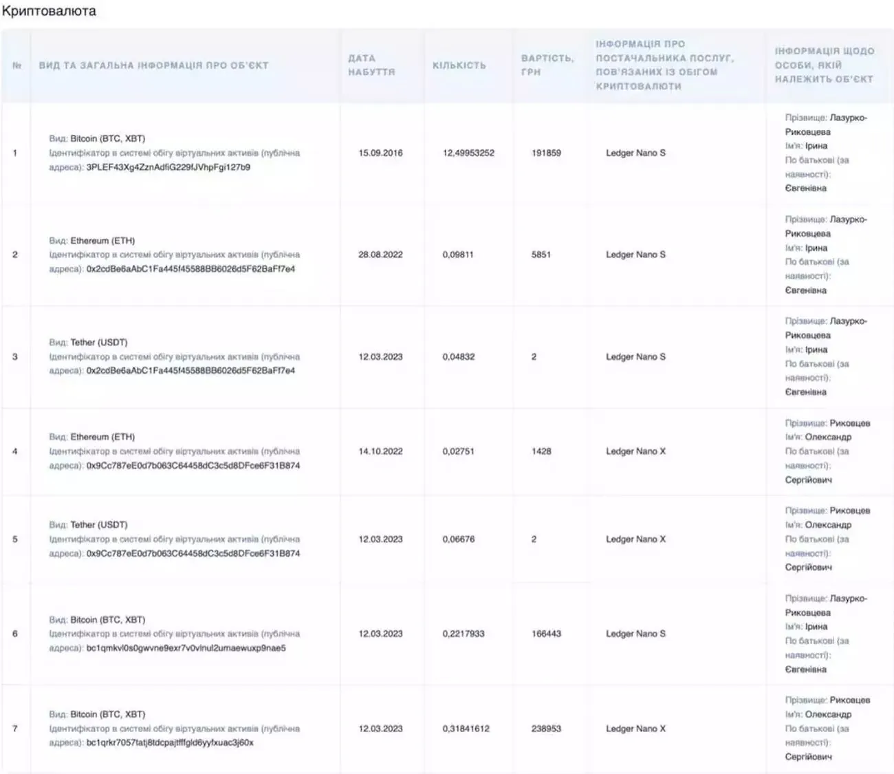 Загалом, йдеться далі у матеріалі, про фейковість віртуальних активів Бравермана та Мойсеєва свідчить швидкість придбання та продажу ними крипти. А головне, у них обох – всупереч вимогам НАЗК – відсутні дані про адреси криптогаманців.