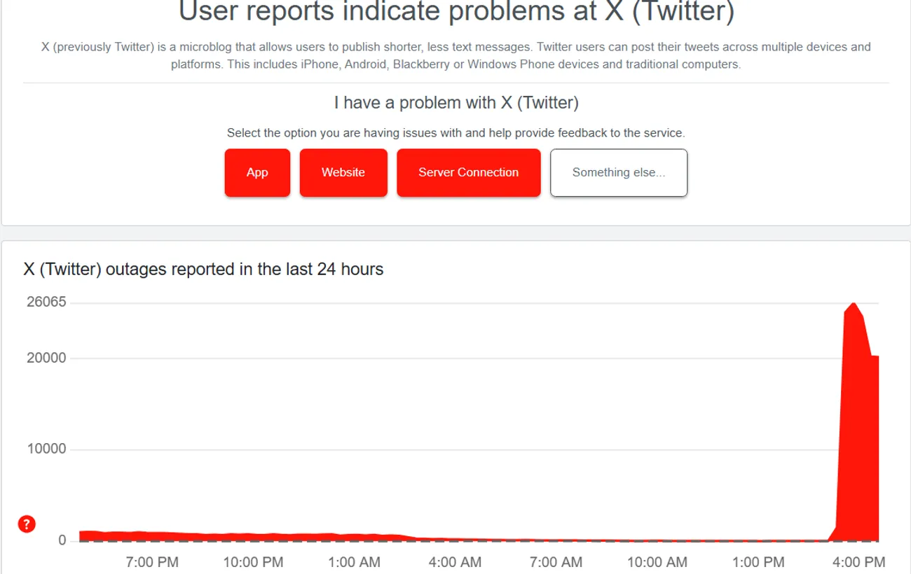 Згідно даних, на проблеми у роботі Х користувачі почали скаржитися ще у п’ятницю, 23 травня.