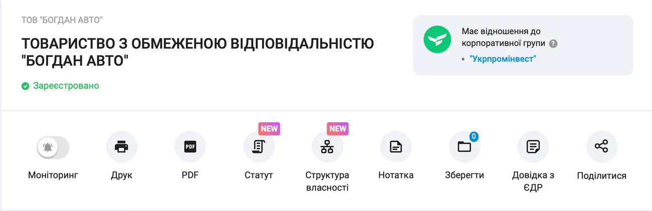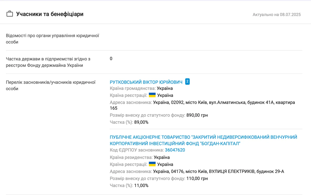 Як свідчать дані YouControl, ТОВ "Богдан Авто" — компанія, що офіційно належить Віктору Рутковському та ПАТ "ЗНВКІФ Богдан-Капітал".