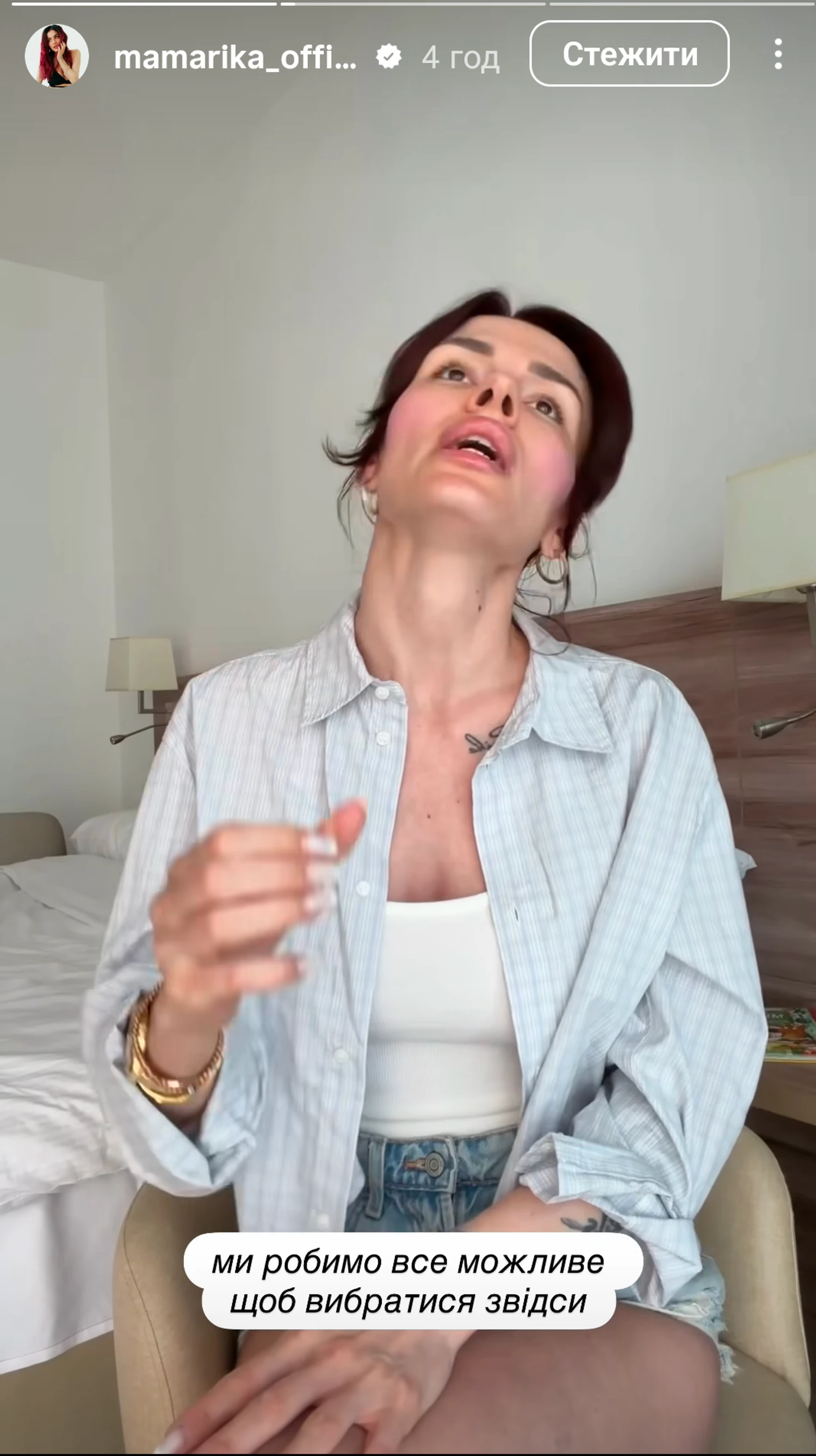 Вона зазначила, що варіанти повільно з’являються, але складна логістика та наявність дітей вимагають більше часу на організацію виїзду. Зірка залишається оптимістичною та висловлює сподівання на вирішення ситуації найближчим часом.