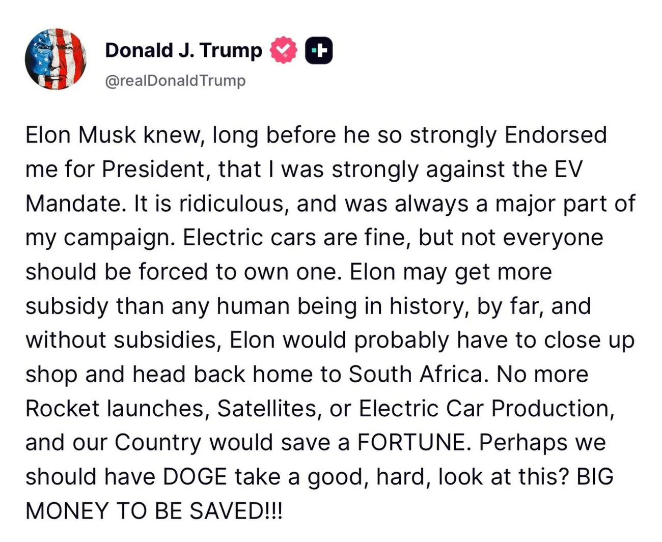 Ілон, можливо, отримує більше субсидій, ніж будь-яка людина в історії. Без субсидій Ілону, ймовірно, довелося б закрити магазин і повернутися додому в Південну Африку. Більше ніяких запусків ракет, супутників чи виробництва електромобілів, і наша країна врятувала б цілий статок. Можливо, нам варто було б попросити DOGE добре і уважно на це подивитися?