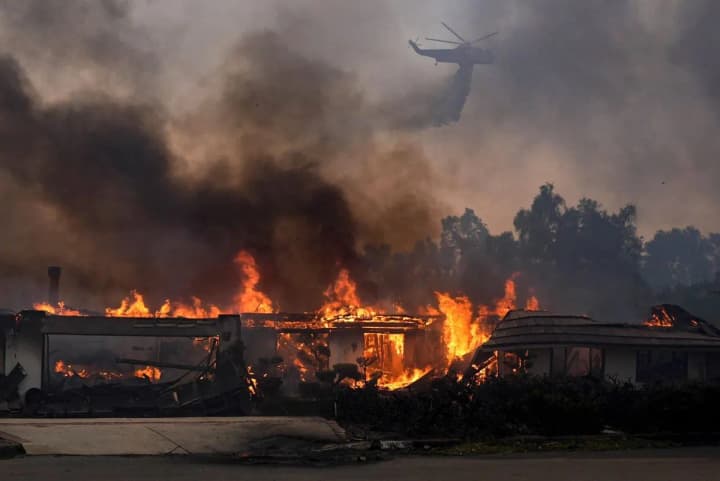 Неконтрольована лісова пожежа охопила не менше 8290 гектарів поблизу Лос-Анджелеса, знищивши 132 будинки. Через сильні вітри евакуйовано 400 будинків, пожежу локалізовано лише на 5%.