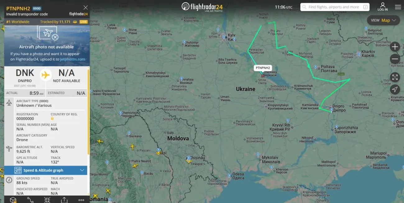 Ще один невідомий об’єкт з позивним PTNPNH1 було помічено на радарах над Одесою, проте наразі він вже не фіксується.