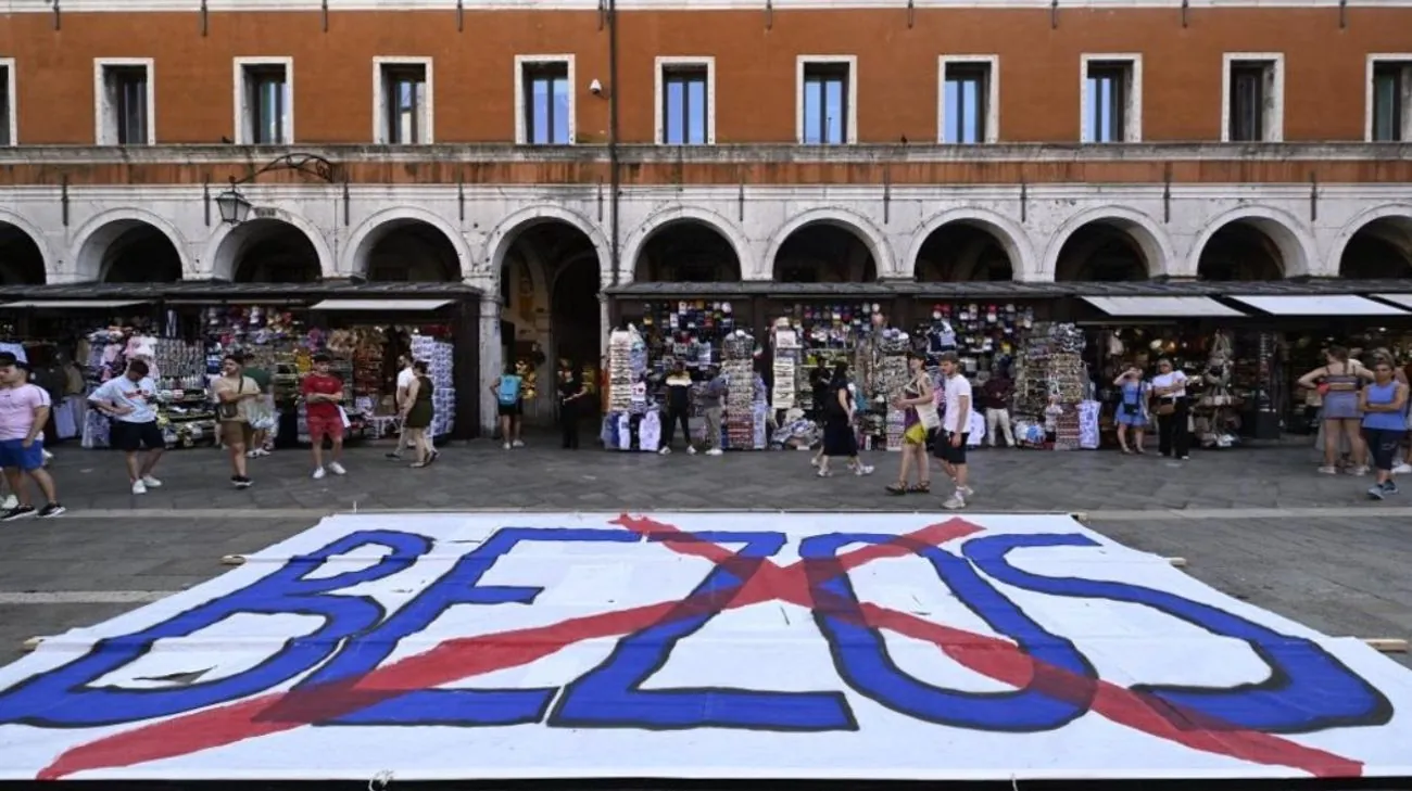 Група "Немає місця для Безоса" закликала до блокади каналів навколо Великої школи милосердя (Scuola Grande della Misericordia) 14-го століття в центрі Венеції, де, як вважалося, пара планувала влаштувати велику вечірку 28 червня, на наступний день після церемонії.