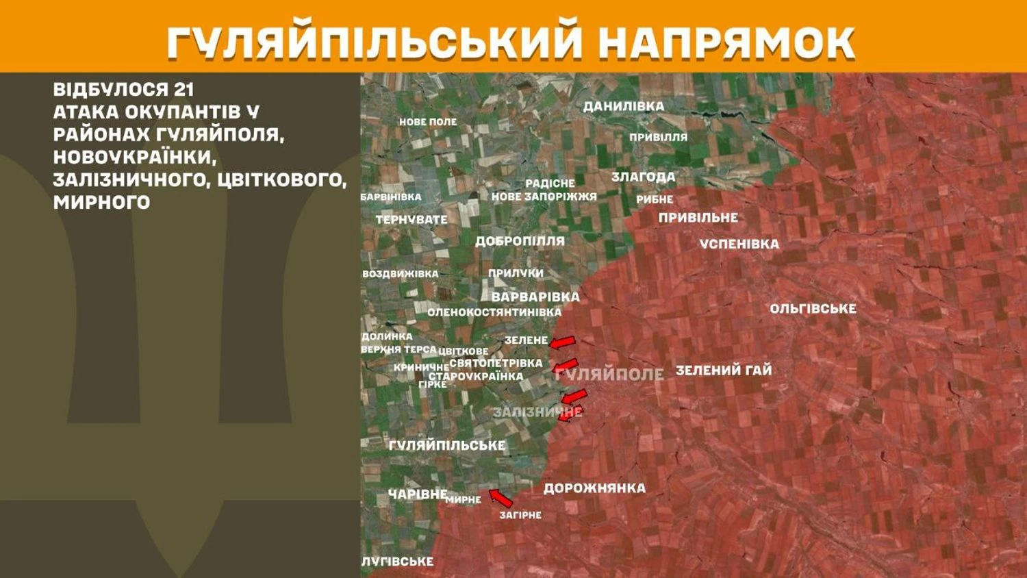На Гуляйпільському напрямку відбулася 21 атака окупантів у районах Гуляйполя, Новоукраїнки, Залізничного, Цвіткового, Мирного.