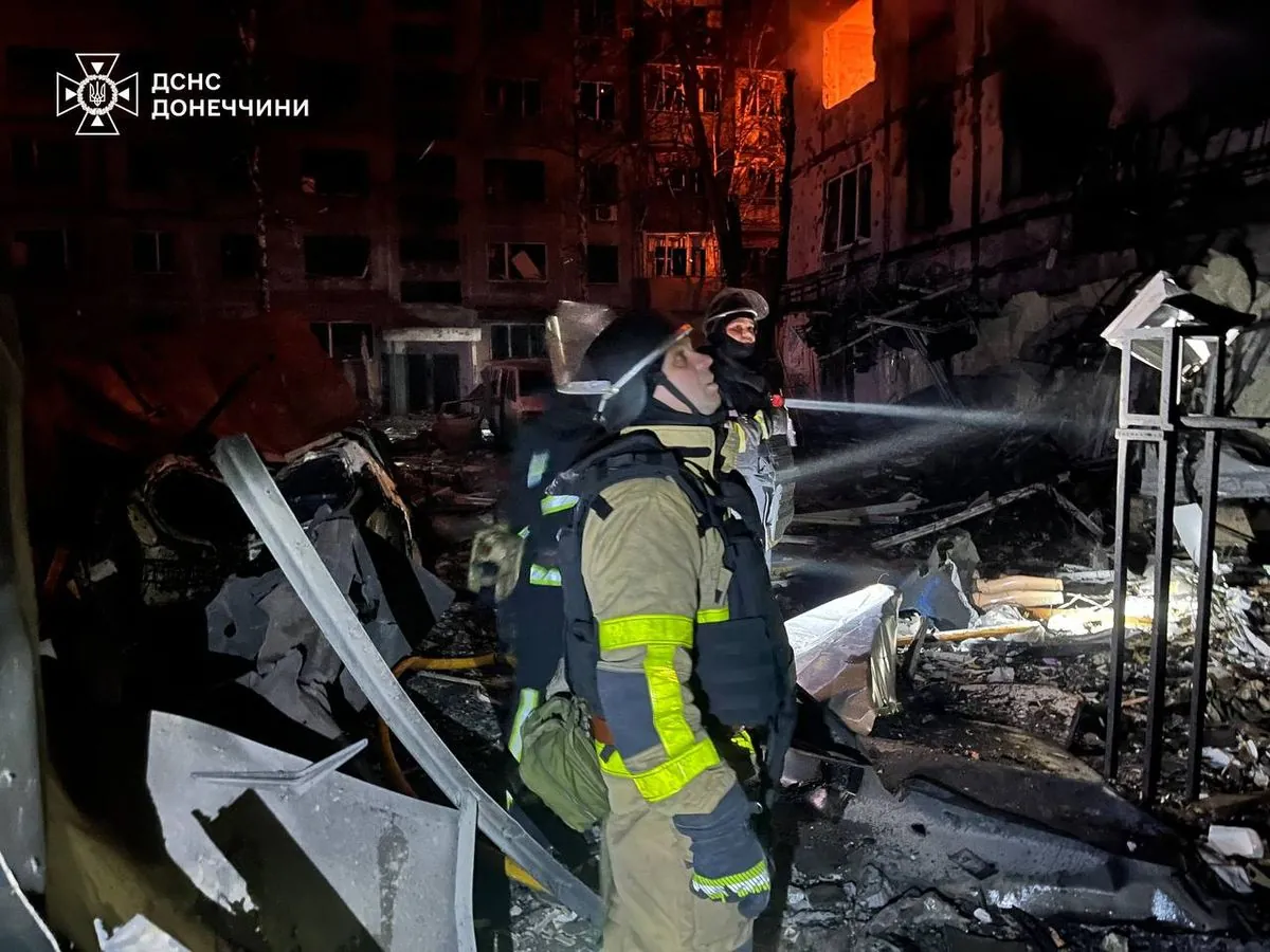 Внаслідок російських ударів по Добропіллю загинуло 11 людей, 30 поранені. Пошкоджено 8 п'ятиповерхівок, адмінбудівлю та 30 автомобілів, рятувальники продовжують роботу під загрозою повторних атак.