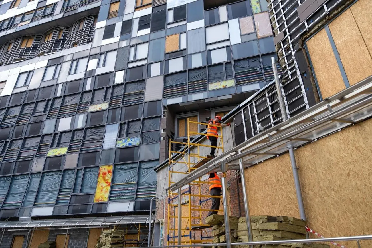 У Національній дитячій спеціалізованій лікарні "Охматдит" тривають відновлювальні роботи після ракетного удару. Демонтаж внутрішніх конструкцій проведено на кількох поверхах, паралельно виконуються фасадні роботи, а фінансування надає благодійний фонд "Охматдит – здорове дитинство".