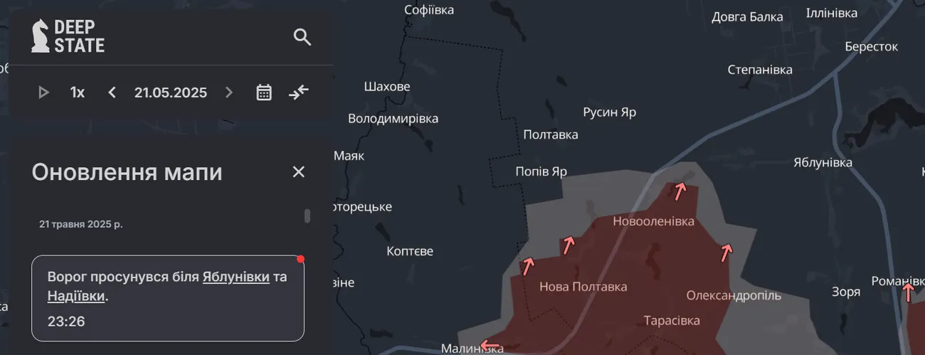 Окупанти просунулись біля Яблунівки та Надіїівки на Донеччині - Deepstate
