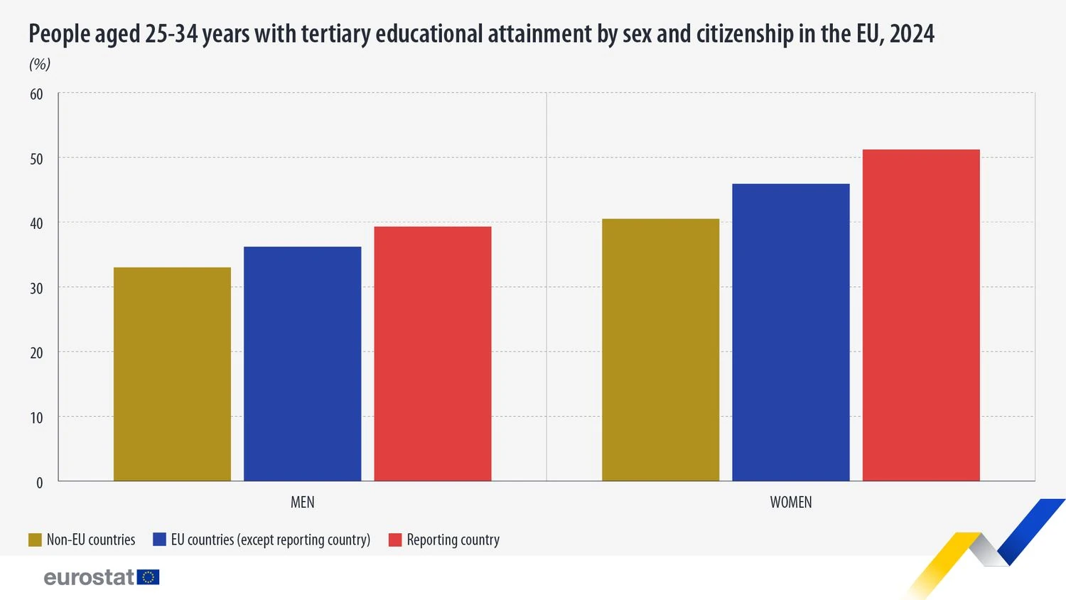 За даними Eurostat, у 2024 році ця частка досягла 36,7% у віковій групі 25–34 років, що на 12,5 відсоткових пунктів більше, ніж у 2014-му.