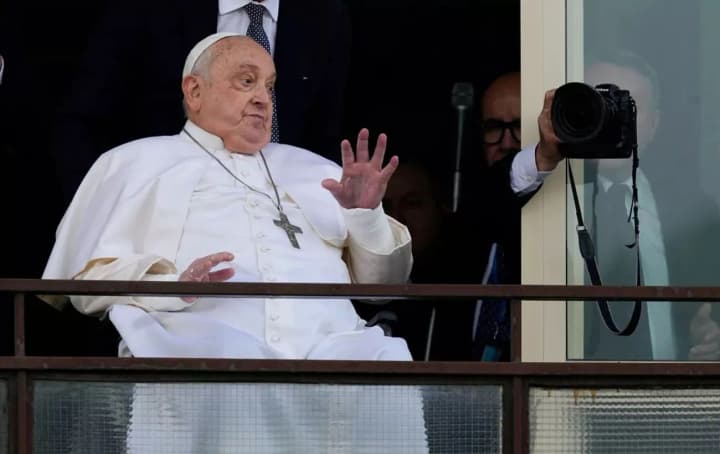 Після більш ніж місячного перебування в лікарні "Аґостіно Джемеллі" з приводу двосторонньої пневмонії Папа Франциск з'явився на публіці в неділю. 88-річного главу Католицької Церкви вивезли в інвалідному візку на балкон університетської лікарні в Римі. Тремтячим голосом він коротко подякував усім за підтримку. Він виглядав дуже слабким. Тисячі людей підбадьорювали його знизу.