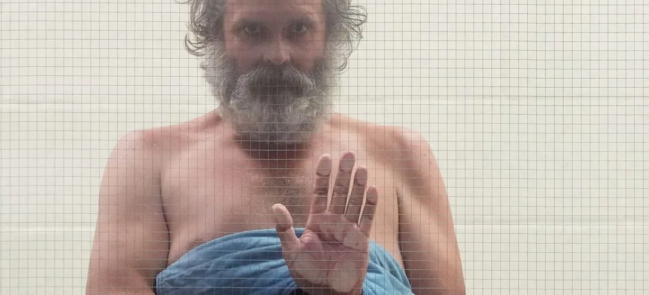 Карвайл з'явився у залі суду Лос-Анджелеса без сорочки та загорнутий у ковдру, - він не говорив під час судового розгляду.