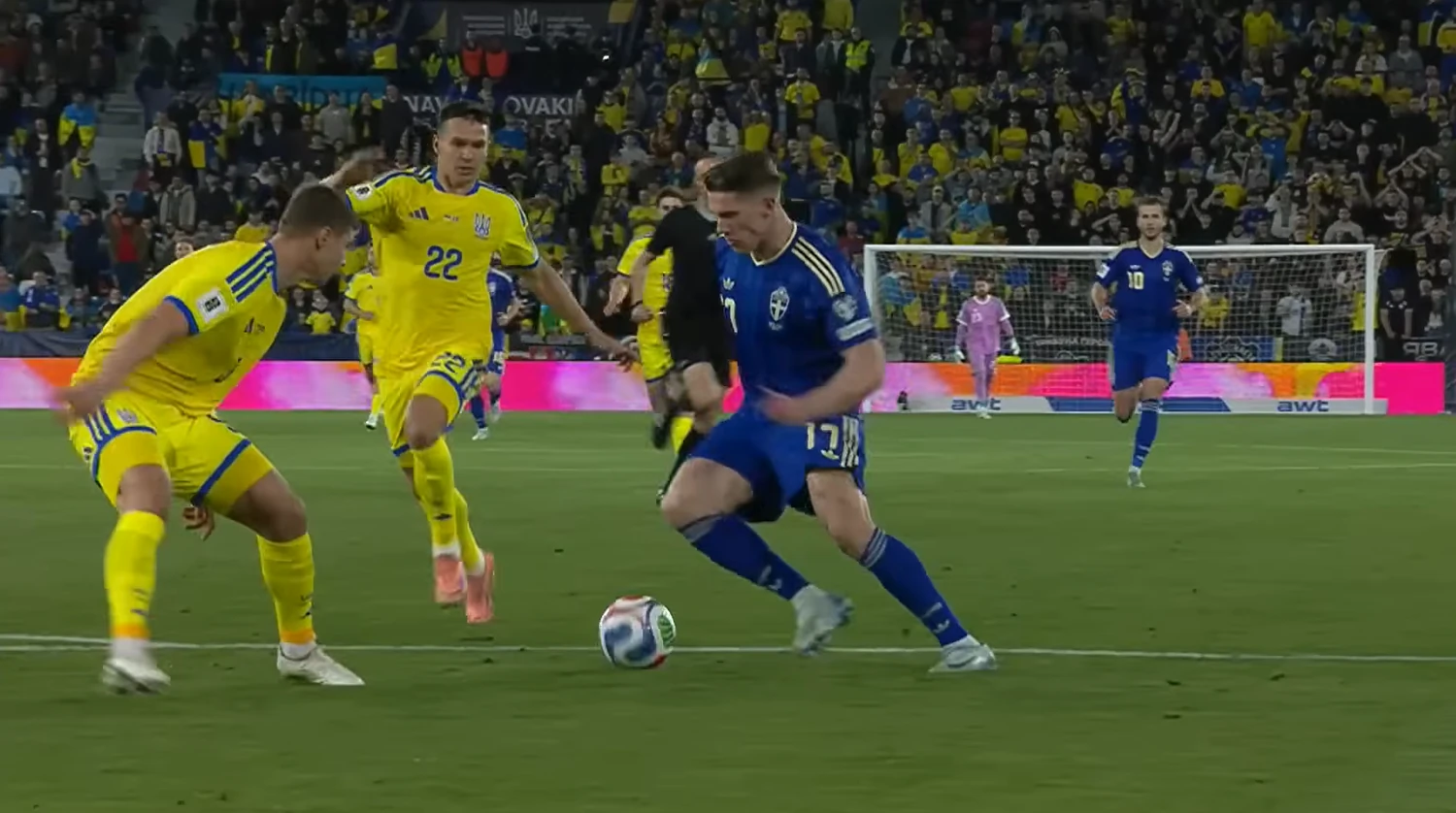 У першому таймі збірна України фактично не змогла організувати системного тиску на ворота суперника. Шведи, своєю чергою, грали обережно, зберігаючи перевагу і не форсуючи події.