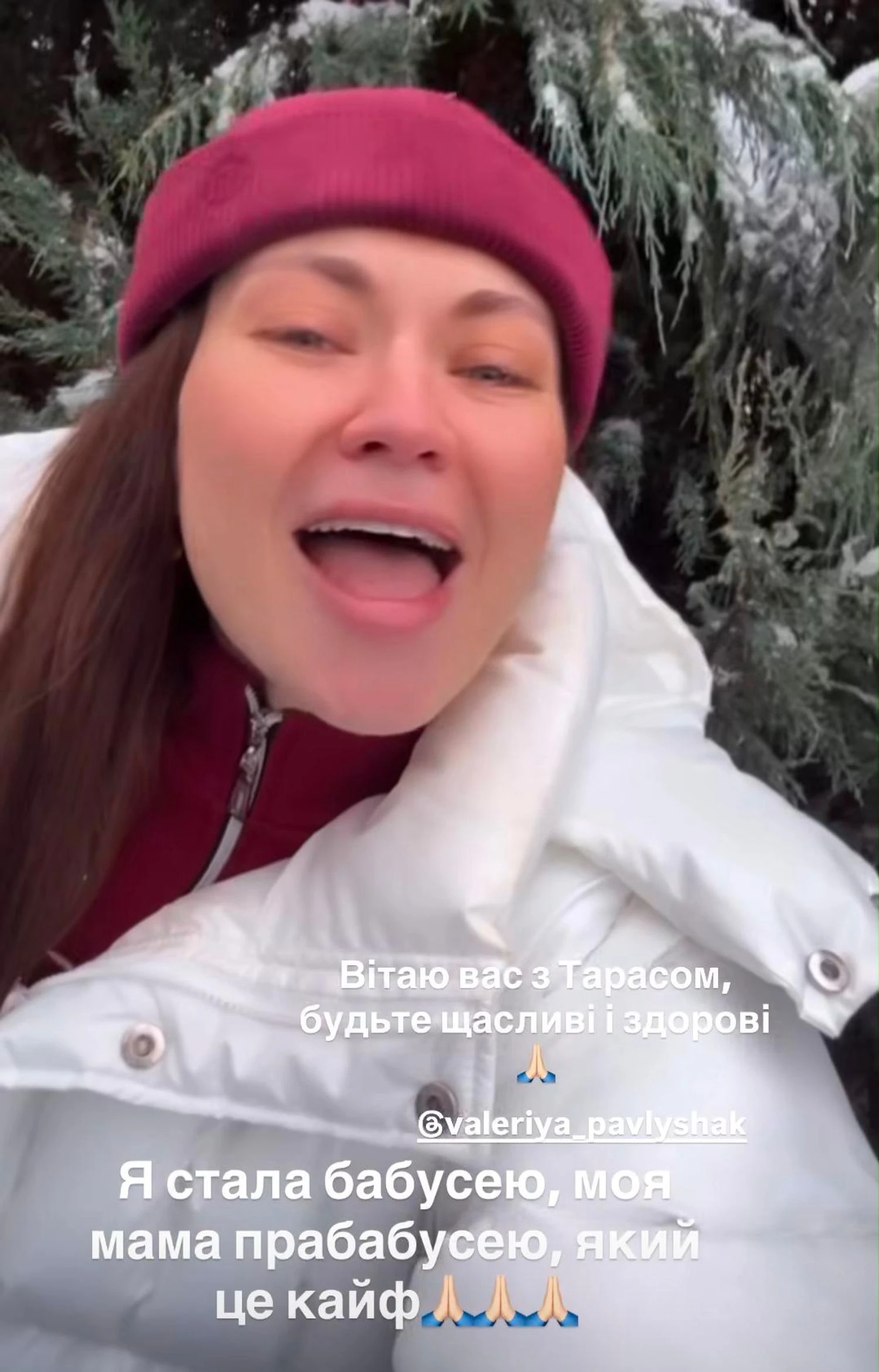 "Сьогодні я стала бабусею, а моя мама — прабабусею. Моя хрещена доця, племінниця Валерія народила неймовірно гарного Ореста. Котику, я тебе вітаю. Боже, який же він красивий. Я подивилася на відео й аж плачу", — зворушливо написала акторка.