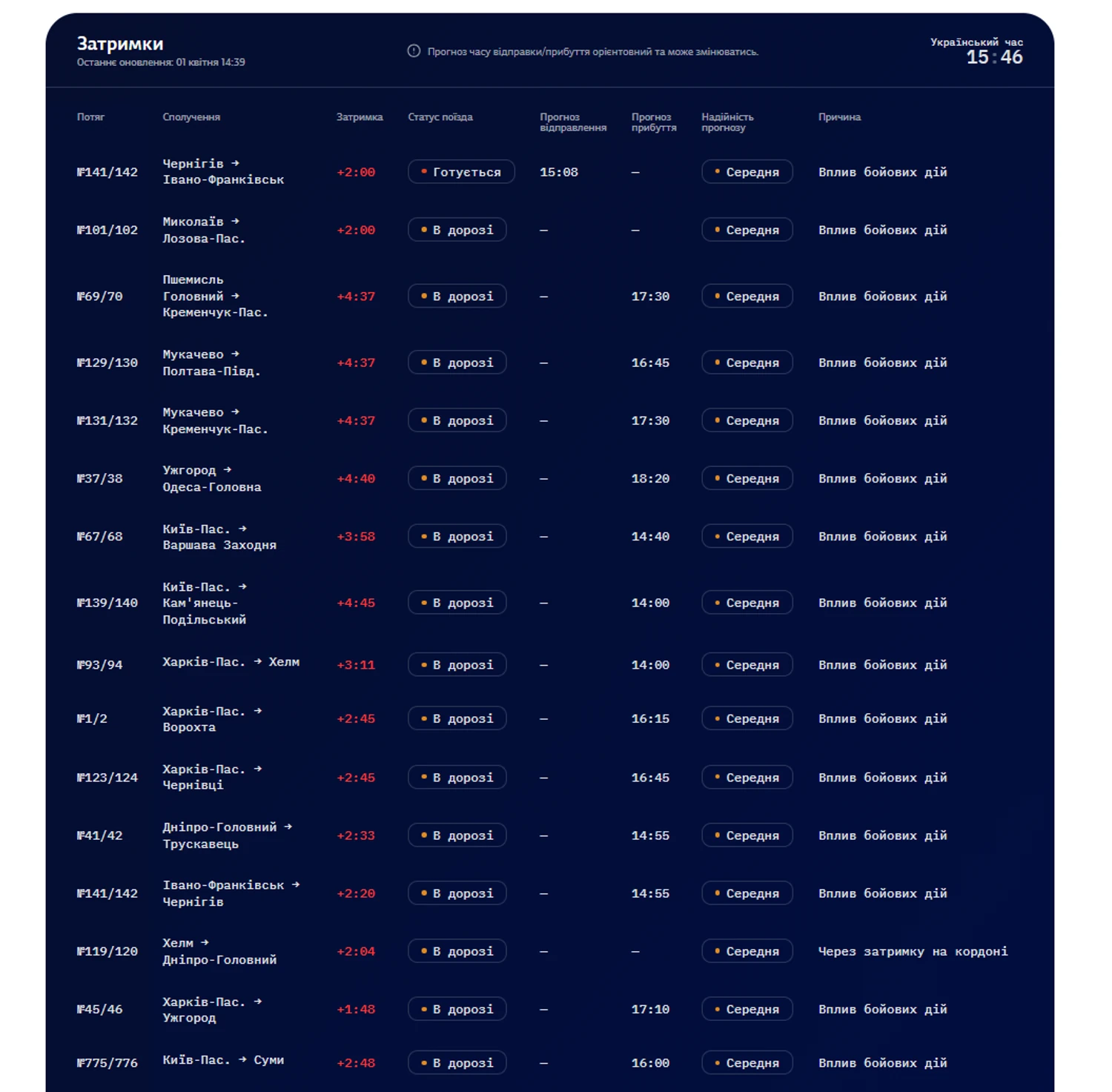 Спочатку повідомлялося про затримку потяга Чернівці – Одеса, а потім, за оновленою інформацією, повідомили у Чернівецькій міськраді у Telegram, виявилося, що поїзд курсує відповідно до графіка. "Водночас поїзд Харків-Пасажирський – Чернівці прямує із запізненням на 2 години 45 хвилин", - вказали у міськраді.