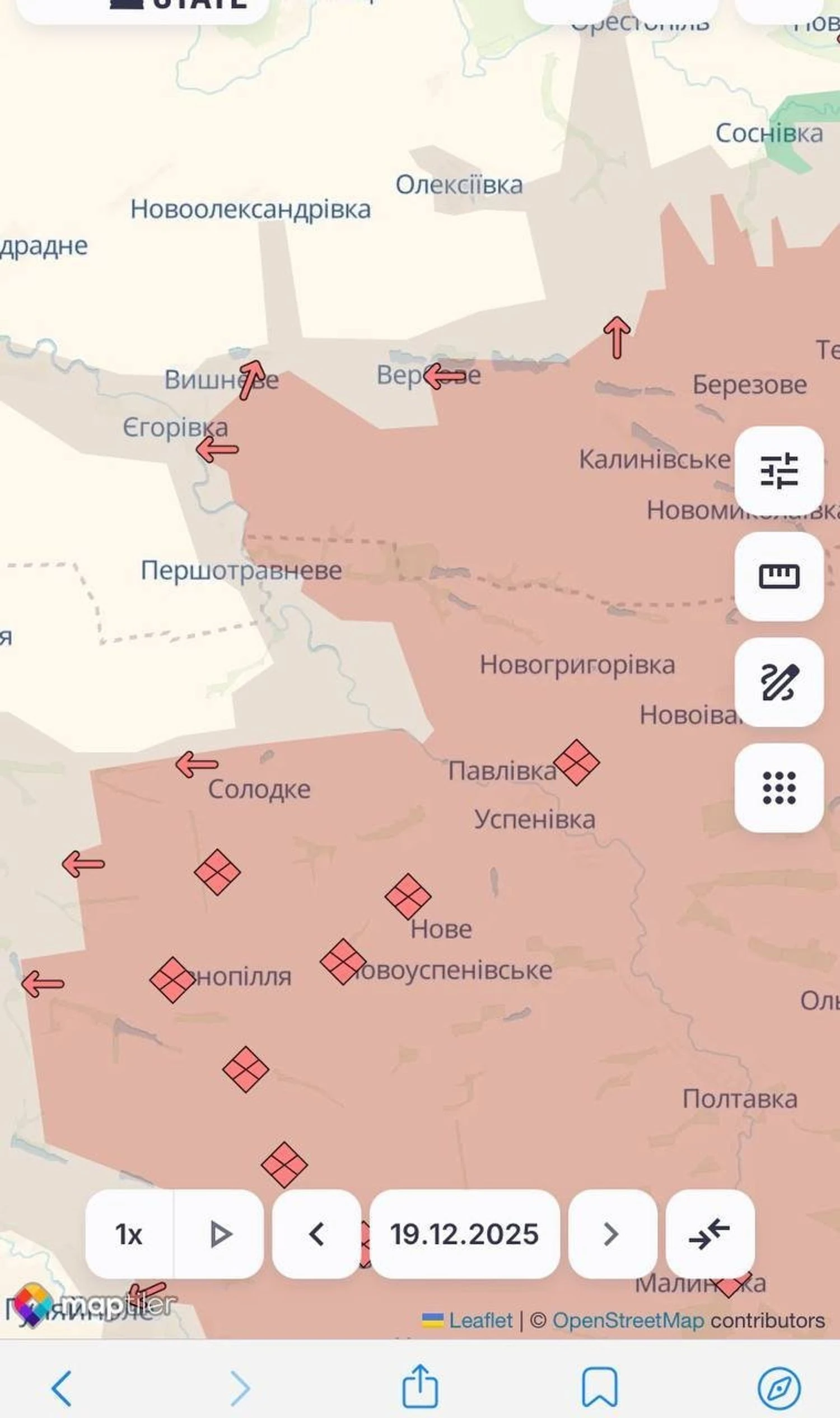 У п'ятницю, 19 грудня о 23:43 аналітики DeepState оновили мапу бойових дій. За їхніми даними, окупанти мають успіхи на фронті.