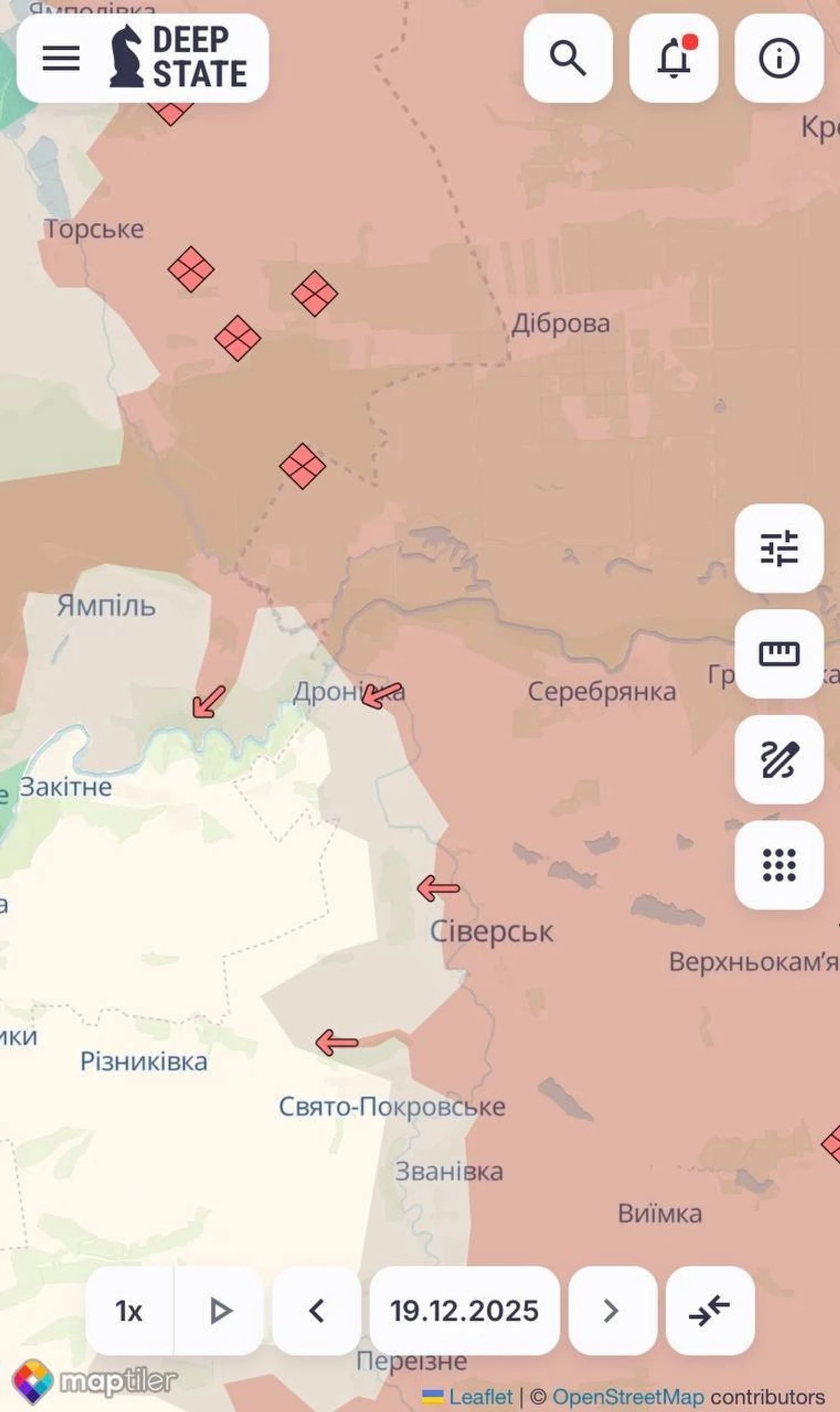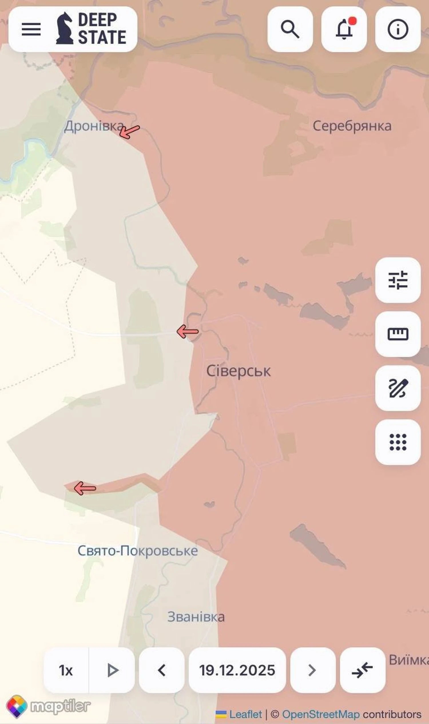 19 грудня стало відомо, що ворог намагається обійти місто Сіверськ в районі Дронівки. Українські військові блокують просування окупантів, які зазнали значних втрат.