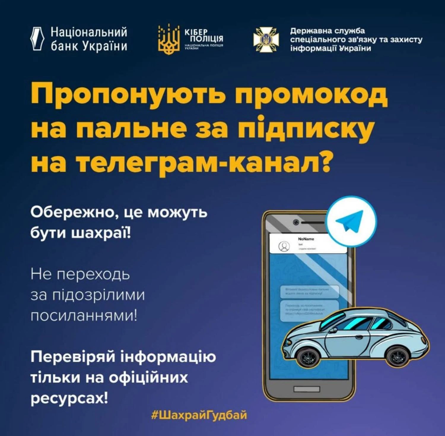 Шахраї пропонують безкоштовне пальне за підписку на Telegram-канал - ЦПД