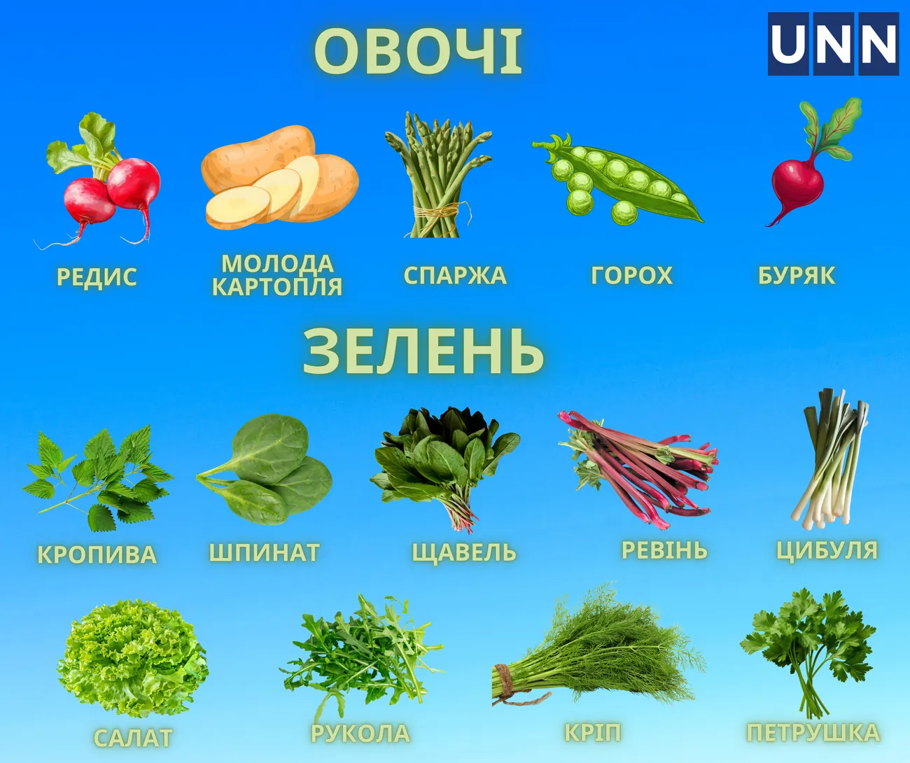 У травні з'являється багато свіжих овочів та фруктів, таких як редиска, шпинат, молода картопля та полуниця. З них можна приготувати прості та корисні страви.