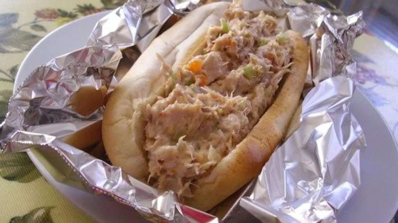 Змішати дрібно порізаного тунця із подрібненим яйцем і соусом. Викласти цю суміш у булку із салатом.