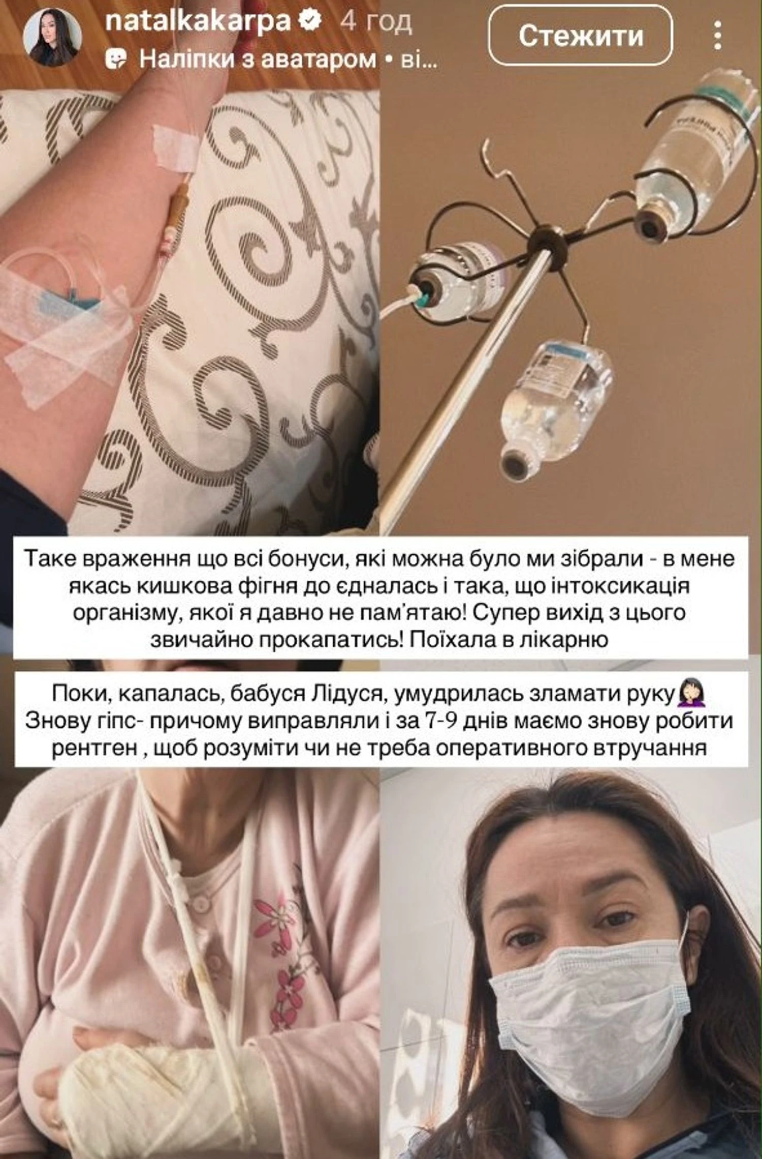 За словами Карпи, її стан різко погіршився через серйозну інтоксикацію організму, спричинену інфекційним захворюванням. У результаті лікарі ухвалили рішення про стаціонарне лікування, де співачці призначили крапельниці та додаткові обстеження.