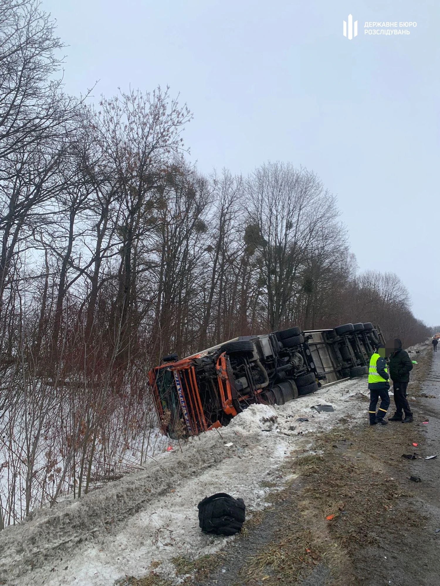 "За попередніми даними, 38-річний військовослужбовець, перебуваючи поза службою та керуючи власним автомобілем, не впорався з керуванням і виїхав на смугу зустрічного руху, де зіткнувся з вантажівкою. Унаслідок зіткнення 42-річна пасажирка легкового автомобіля загинула на місці події", - повідомили у ДБР.