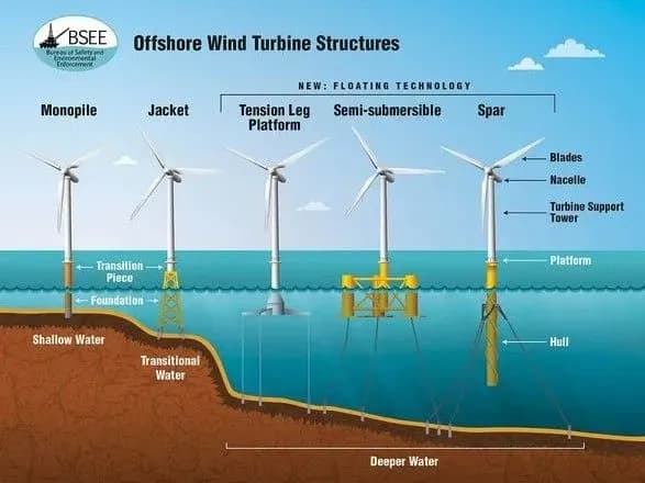 За словами офіційних осіб США, дві третини морського вітроенергетичного потенціалу Америки зосереджені в глибоководних районах, таких як узбережжя Каліфорнії та Орегону, де потрібні плавучі платформи.