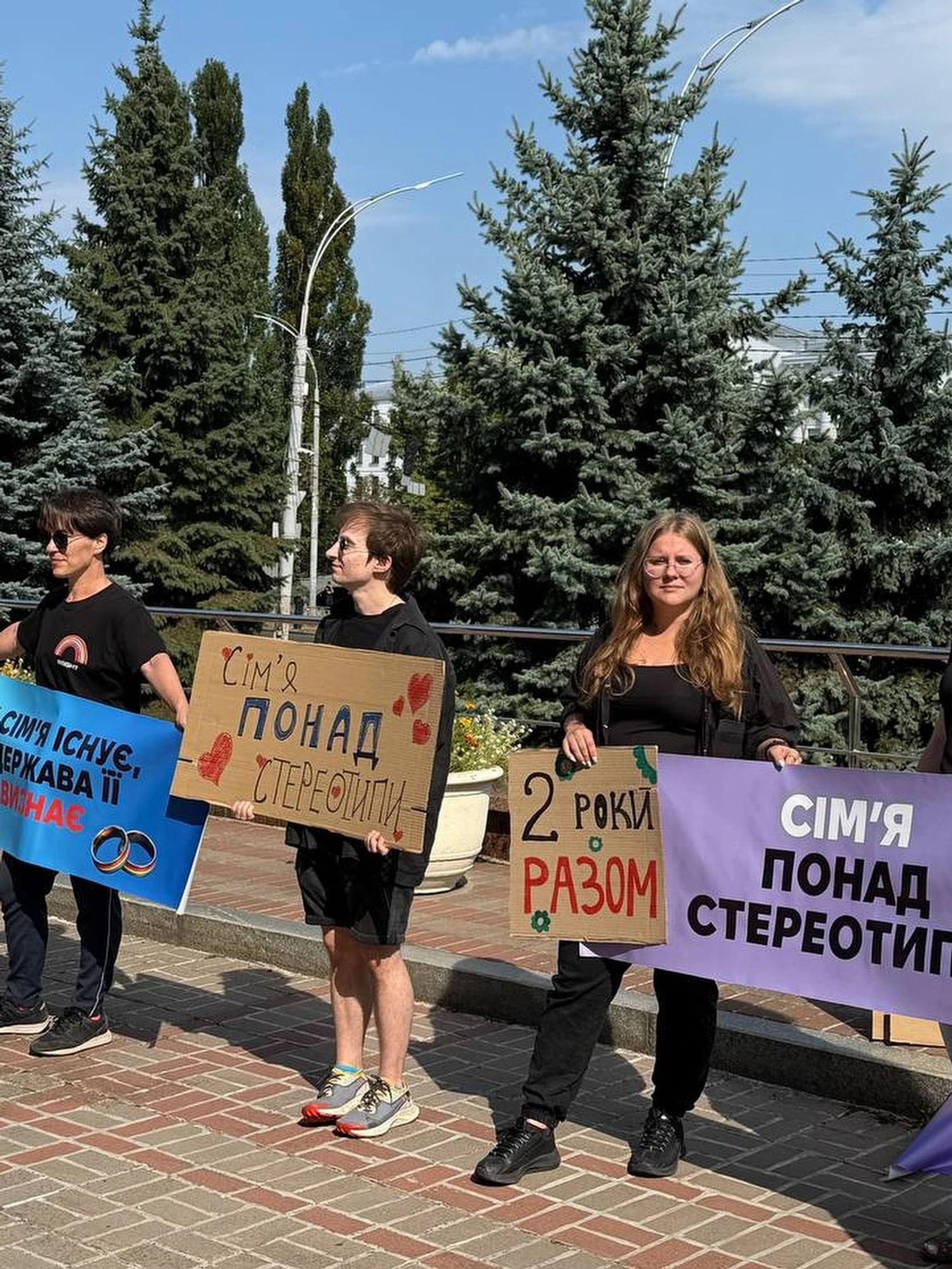 Сьогодні ми вийшли під будівлю Київського апеляційного суду, щоб показати: тема одностатевих шлюбів важлива для всієї спільноти. ЛГБТІ+ люди в Україні досі чекають на визнання своїх сімей і рівність прав. І ми не мовчимо.