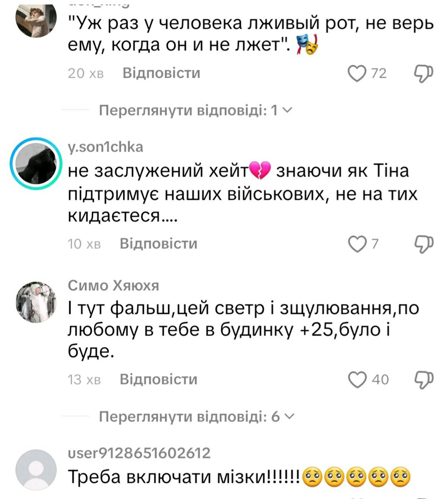Українська співачка Тіна Кароль відреагувала на реакцію користувачів соцмереж після публікації фрагменту її нової пісні, де йшлося про відсутність світла та тепла. Ролик викликав активне обговорення - одні сприйняли його як спробу додати оптимізму, інші вважали слова недоречними в умовах реальних труднощів. Про це повідомляє УНН з посиланням на сторінку співачки в Instagram.