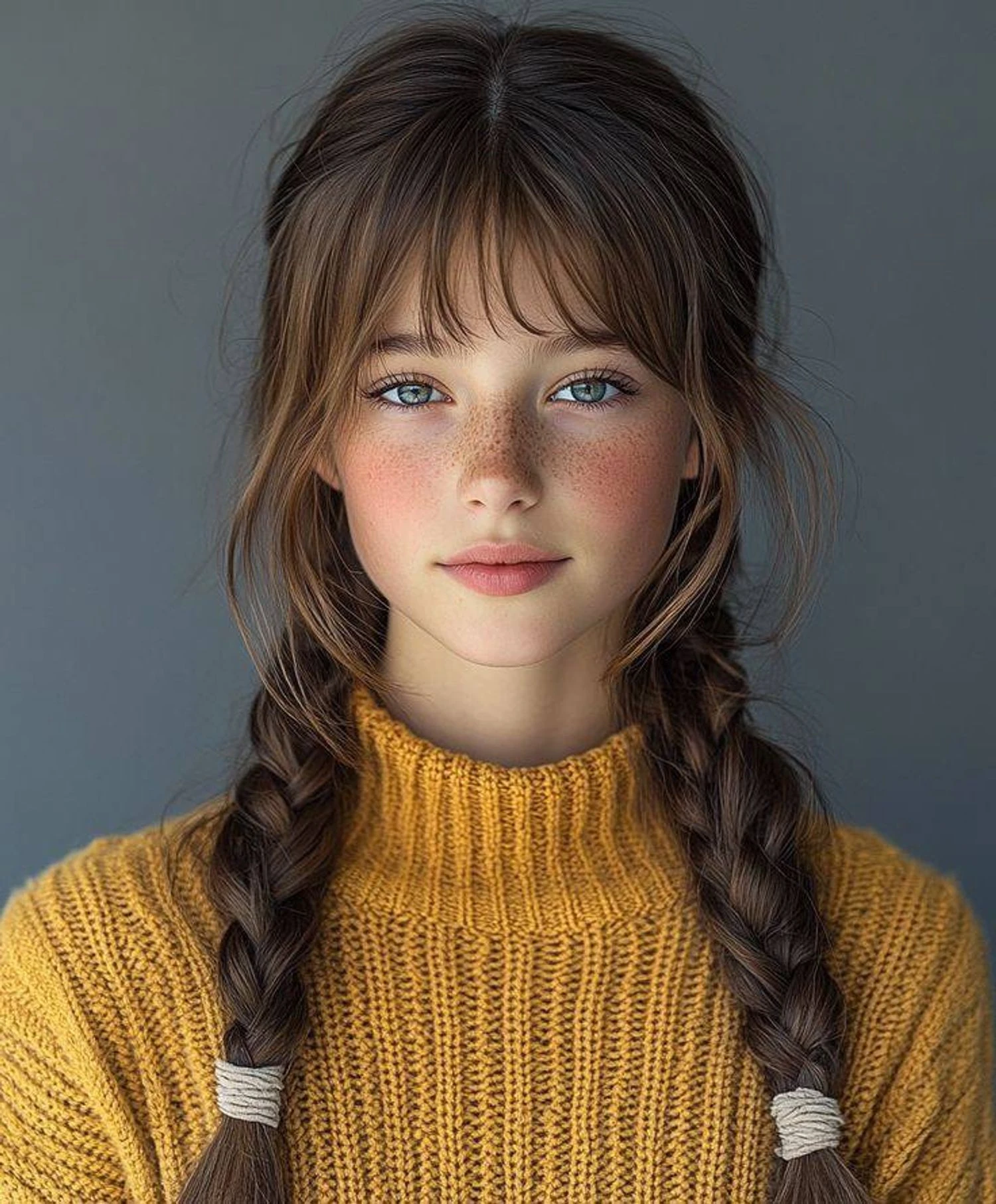 Найпопулярніша зачіска школярок, особливо після виходу серіалу "Венздей" - дві рівні кіски. Вони виглядають мило й акуратно, а ще добре тримають волосся протягом дня. Для святкового вигляду можна додати банти або яскраві резинки.
