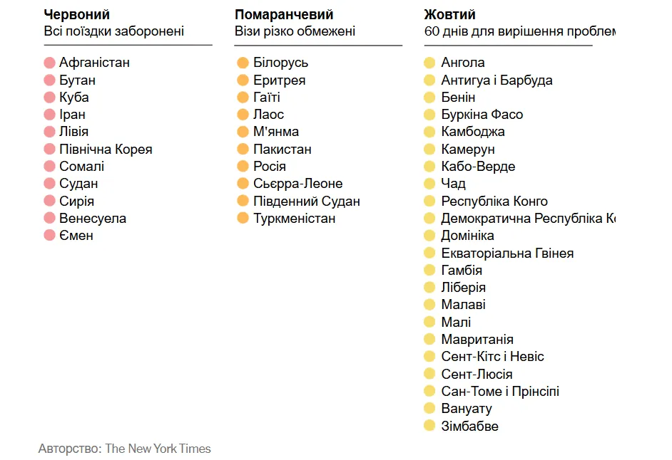 Адміністрація Трампа розглядає можливість розширення списку країн, громадянам яких буде заборонено в'їзд до США. До списку ввійшли як країни з червоної, так і з помаранчевої зони.