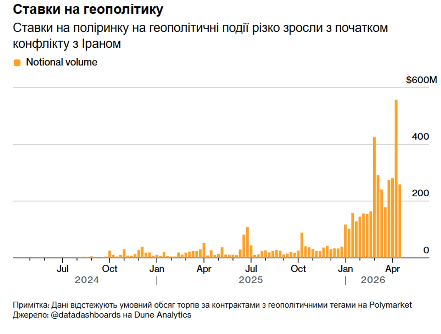 Паралельно зростає інтерес до ставок на геополітичні події на спеціалізованих платформах, що також викликає питання щодо прозорості ринку.