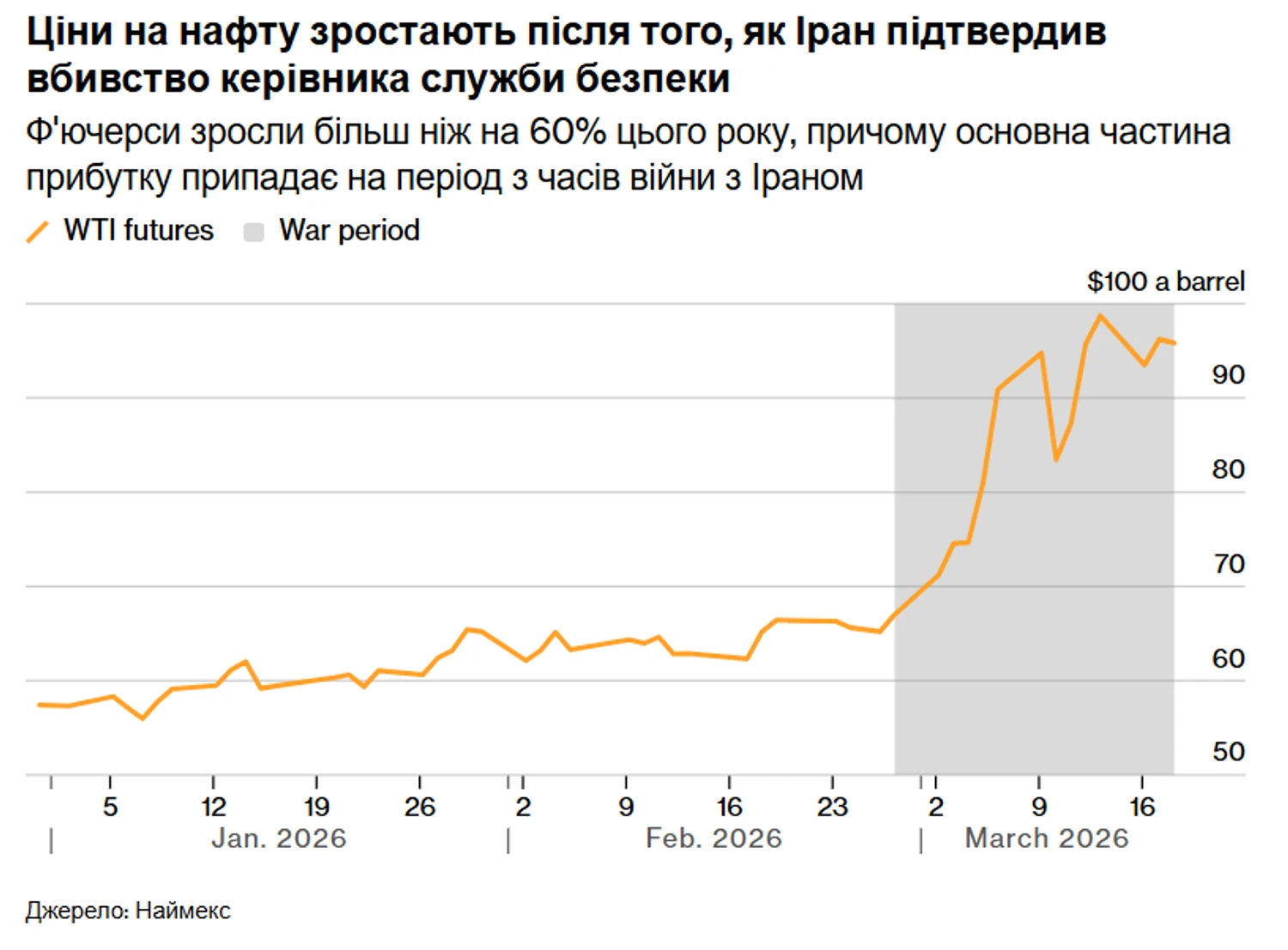 Світові ціни на нафту продовжують зростати на тлі ескалації війни на Близькому Сході. Іран підтвердив загибель секретаря Ради нацбезпеки Алі Ларіджані, що посилило напругу на ринку. Про це повідомляє Bloomberg, пише УНН.