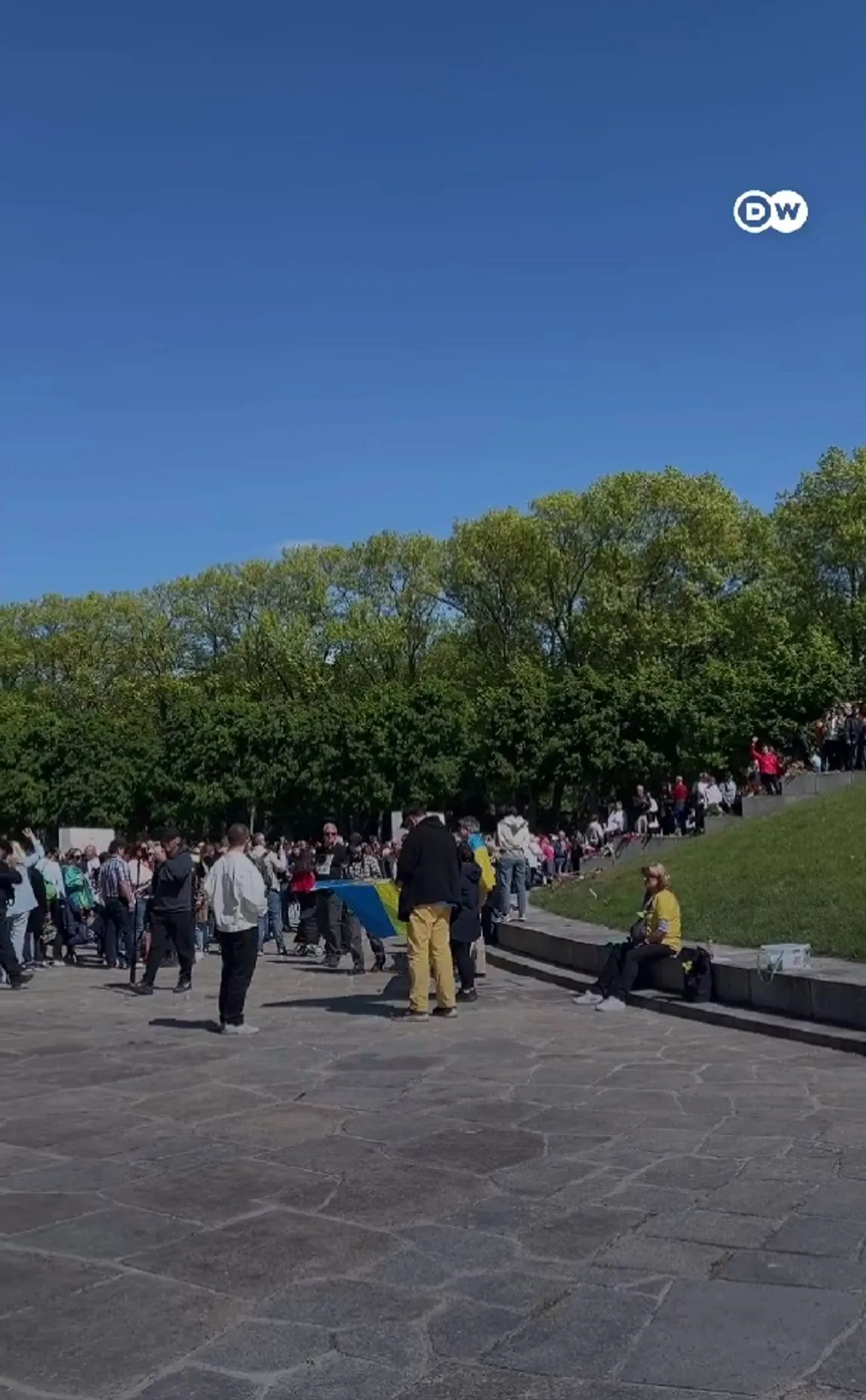 9 травня радянський меморіал у Берлін-Трептов стає символічно зарядженим місцем. Як свідчить репортаж Deutsche Welle,біля радянського меморіалу не обійшлося без відчуття напруги.