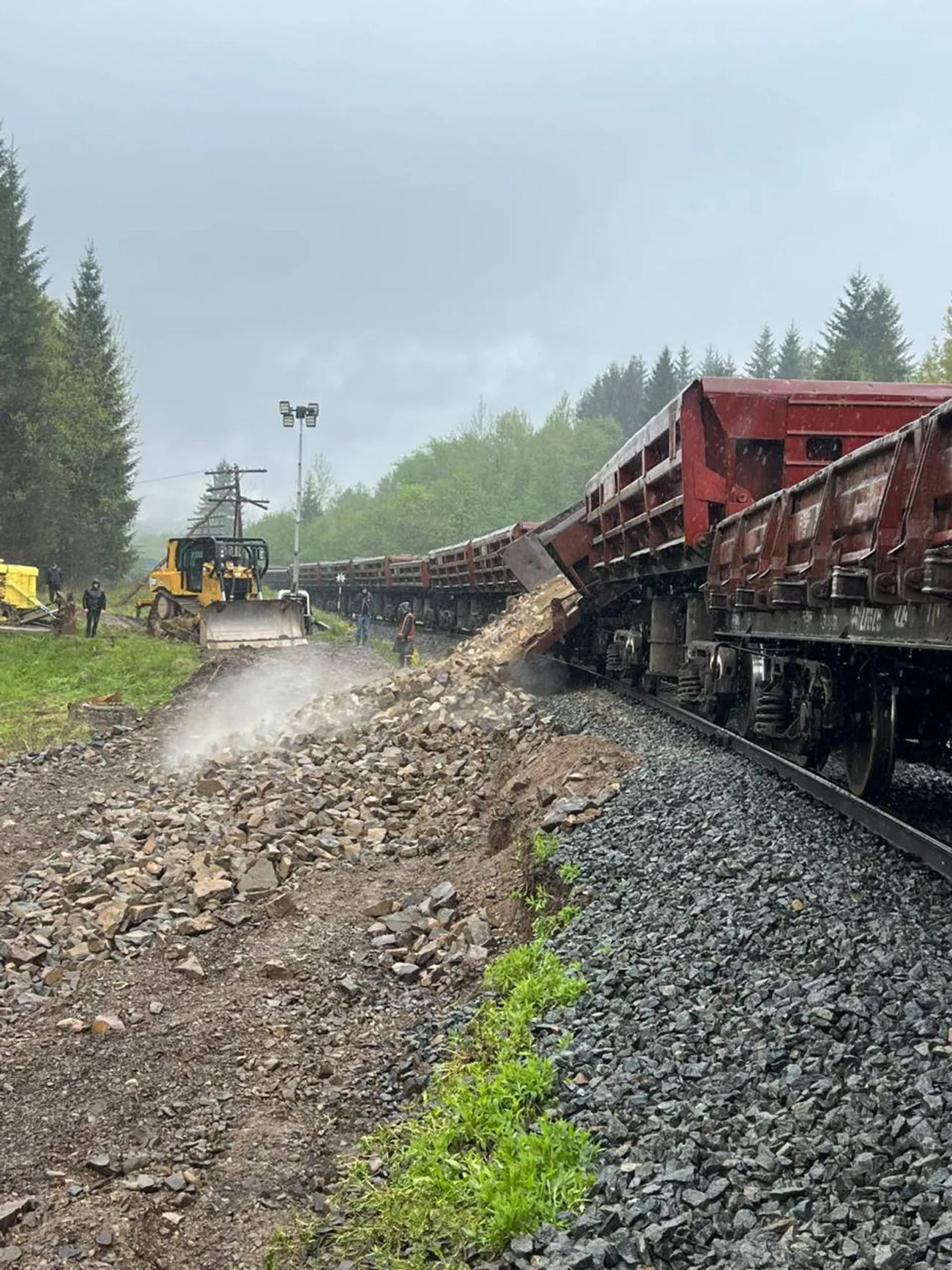 Станом на зараз вивантажили 11 вагонів бутового каменю та розпочали формування контрбанкету (так названої "поліції", яка дозволяє підсилити насип земного полотна). На локації працює спеціалізована залізнична та звичайна автотракторна техніка, екскаватор