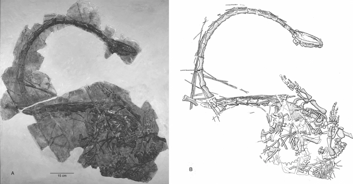 Dinocephalosaurus мав значно більше хребців і в шиї, і в тулубі. До того ж він був живородним – тобто народжував дитинчат, а не відкладав яйця. Це свідчить про його глибоку адаптацію до океанічного способу життя