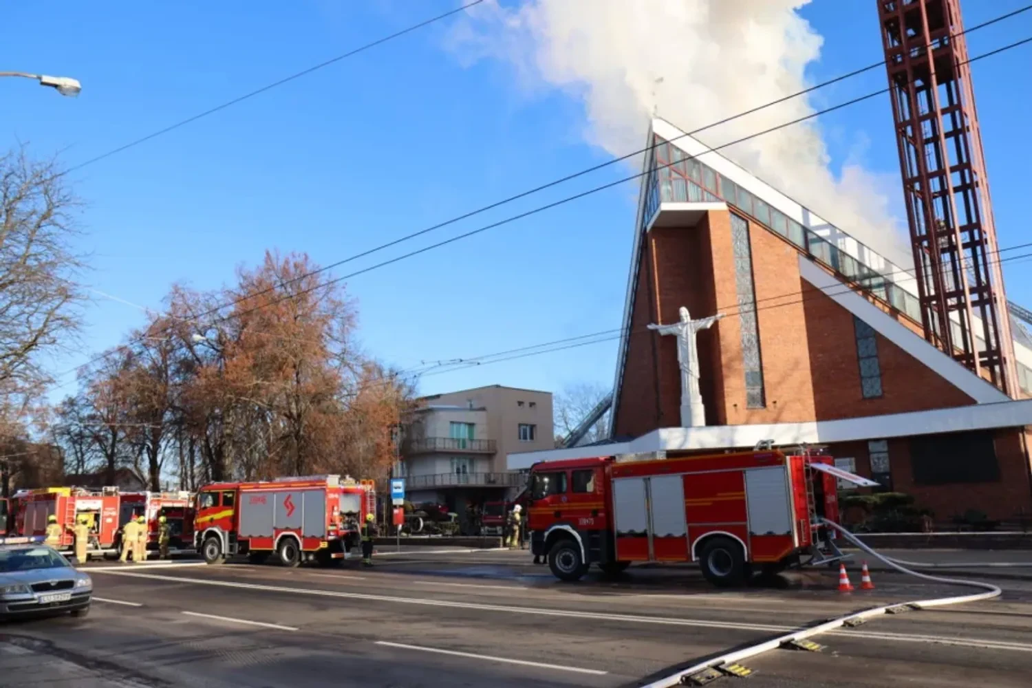 У польському Любліні на Різдво спалахнула пожежа в церкві на вулиці Куницького, через що скасували служби. Близько 70 вогнеборців гасять вогонь, якому перешкоджають фотоелектричні панелі на даху.
