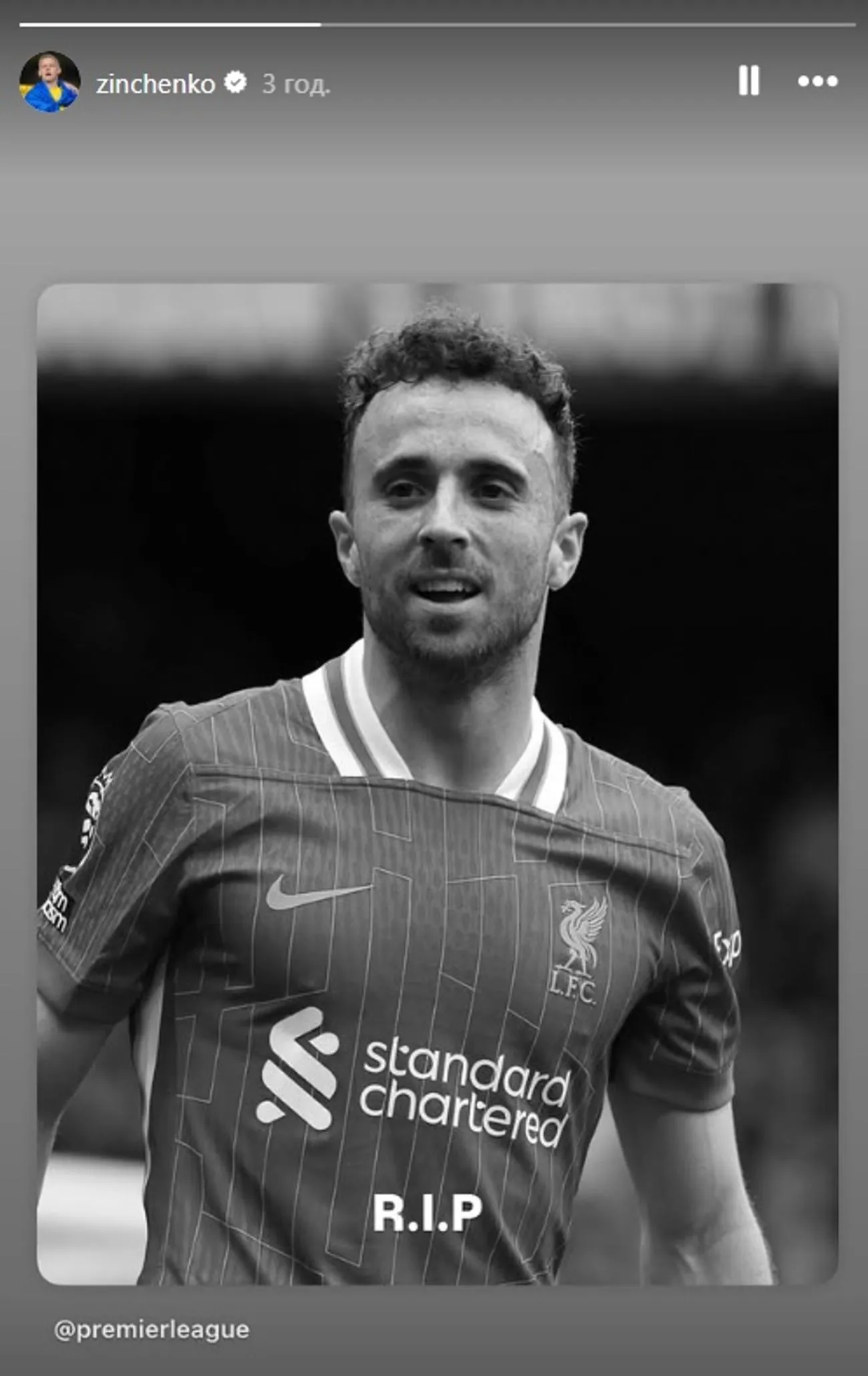 ФК "Динамо" Київ з почуттям глибокого суму та скорботи зустрів новину про загибель в автокатастрофі нападника "Ліверпуля" та збірної Португалії Діогу Жоти. Це величезна трагедія та втрата для усього сучасного футболу. Висловлюємо глибокі та щирі співчуття родині футболіста, близьким та усім, хто його знав. Нехай світла пам’ять про нього живе в серцях кожного, хто його цінував, поважав та захоплювався його грою