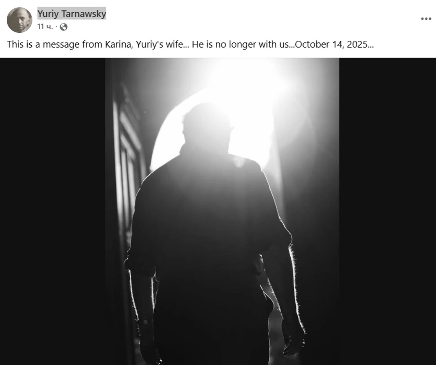 Передає УНН із посиланням на сторінку Yuriy Tarnawsky у соцмережі.