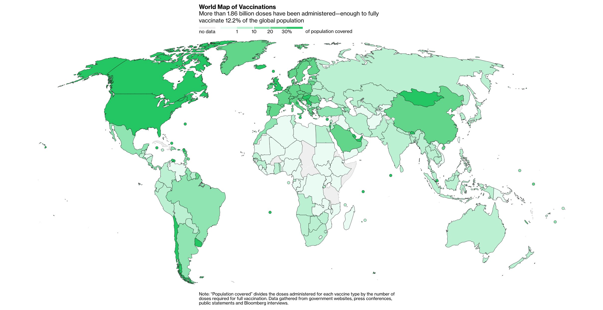 Зазначається, що хоч і було введено досить доз, щоб повністю вакцинувати 12,2% населення світу, розподіл був нерівномірним.
