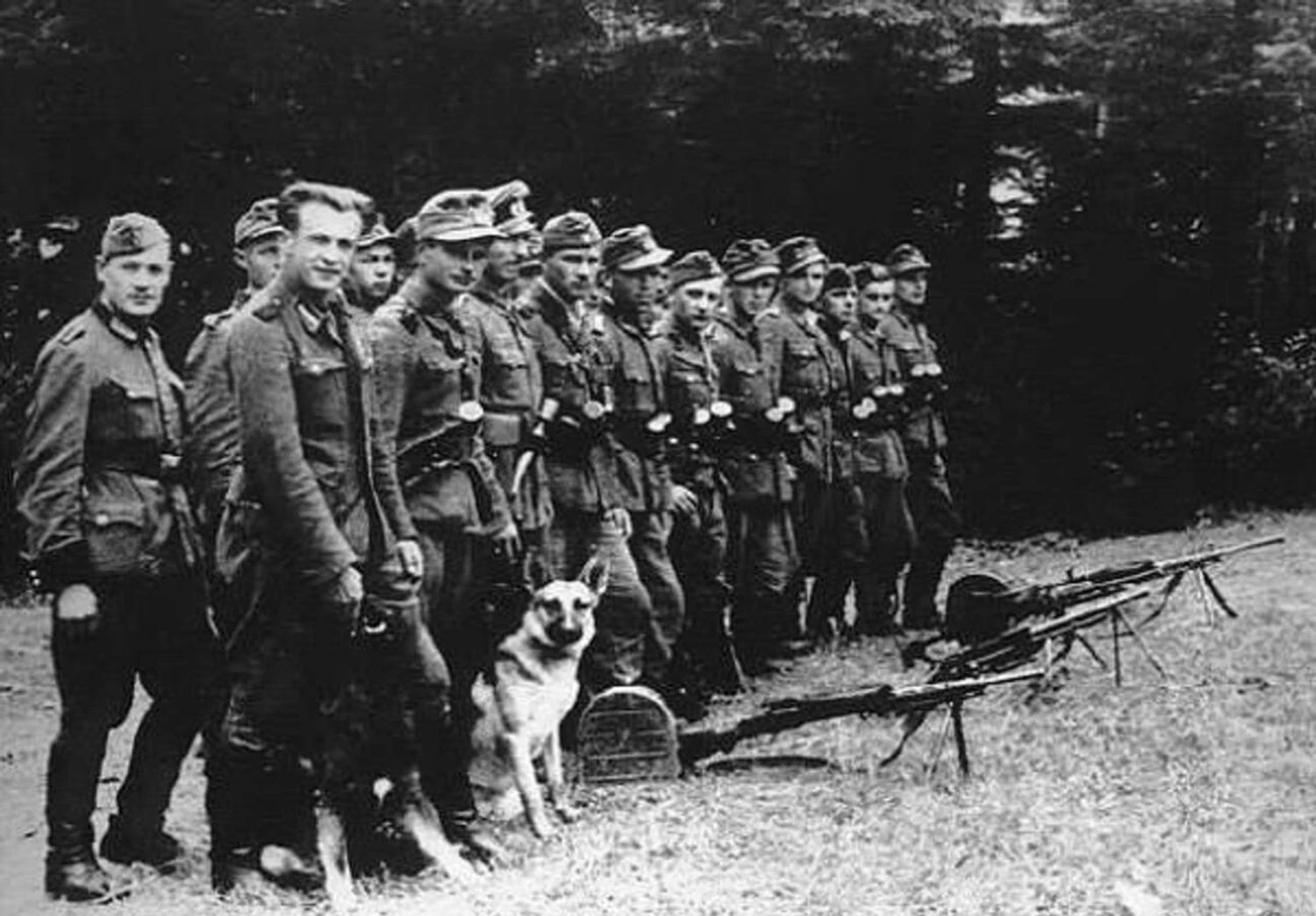 Сотня УПА "Леви", яка охороняла 1-ий Великий збір Української визвольної ради. Зброя, обмундирування і вівчарка - трофейні.