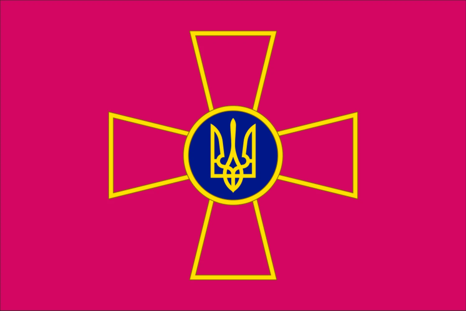 В основі емблеми ЗСУ - малиновий рівносторонній хрест. Посередині розміщено синій медальйон з Тризубом.