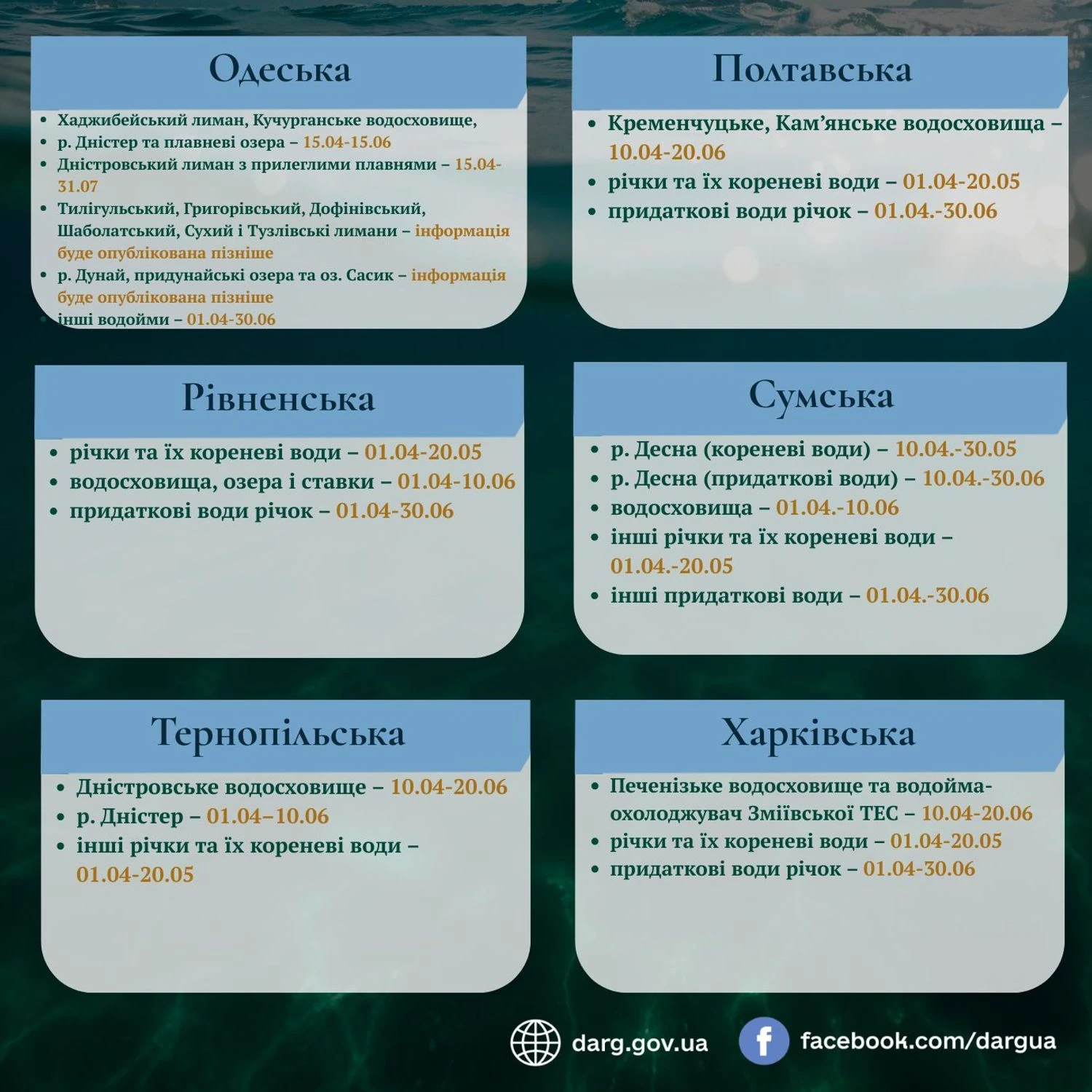На період нересту також запроваджують додаткові обмеження на водоймах.