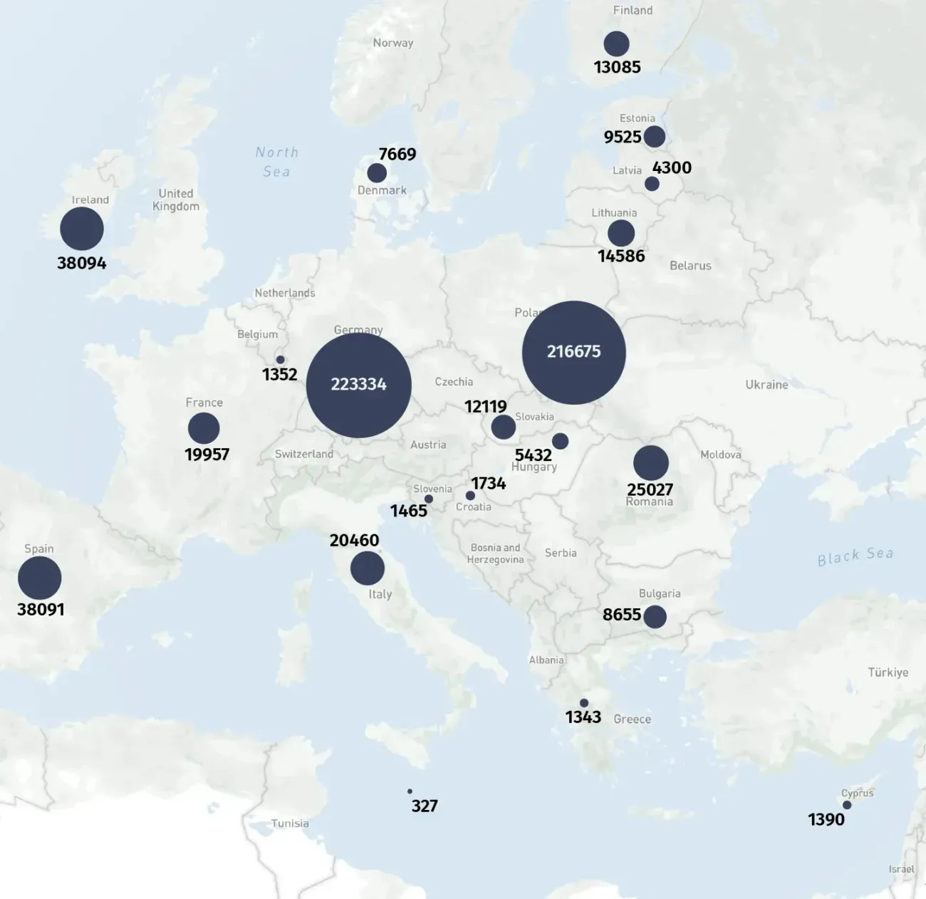 За даними Управління верховного комісара ООН у справах біженців, приблизно 1,4 млн вимушено переміщених українців по усьому світу – це діти 3-17 років. Найбільше школярів і дошкільнят з України зараз проживає у Німеччині, Польщі, Чехії та Великій Британії.